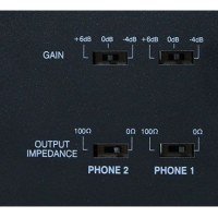 Por último, pero no menos importante, los ingenieros no olvidaron los auriculares que escuchan los audiófilos, por lo que debajo del dispositivo encontrará los interruptores que le permitirán ajustar la ganancia y la impedancia de salida de forma independiente para 2 auriculares (ganancia: +6, 0, -4dB, impedancia de salida: de 0 a 100 Ω).
