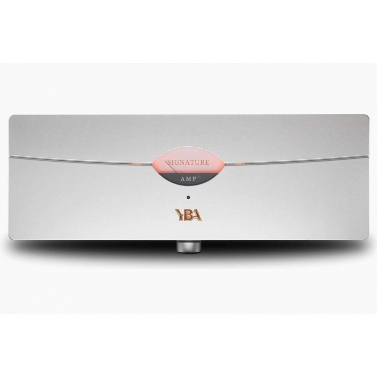 La calidad constructiva de esta etapa de potencia es excepcional, con un chasis en dos sólidas piezas de aluminio. La apariencia es refrescantemente discreta sin botones de control y con un indicador de nivel ovalado que nos lleva a tiempos pasados. Con una potencia de 600 W a 8 ohmios en modo puenteado, ¡este amplificador no se queda corto en potencia! Dispone de entradas estéreo y mono con entradas XLR y RCA y de 2 juegos de salidas por canal. Si bien la game Signature no es asequible, por su precio, sobre todo si se combina con el preamplificador y reproductor de CD Signature, va a ser muy difícil encontrar algo que sea musicalmente más satisfactorio. Características técnicas Amplificador YBA Signature Potencia: Stereo 200W/8? Stereo 400W/4? Mono 600W/8? Entradas: 1 x XLR stereo 1 x RCA stereo 1 x XLR mono Salidas: 2 pares SNR: >95 dB Respuesta en frecuencia: 20 Hz - 20 kHz (-0.5 dB) THD+N (20 Hz - 20 kHz): <0.1% Alimentación: Alimentación lineal con transformador de núcleo UI de altas prestacioens con 1.000VA Mando a distancia: Para todas las funciones Dimensiones: 30mm x 390mm x 170mm (w x p x h) Peso: 42,5 kg