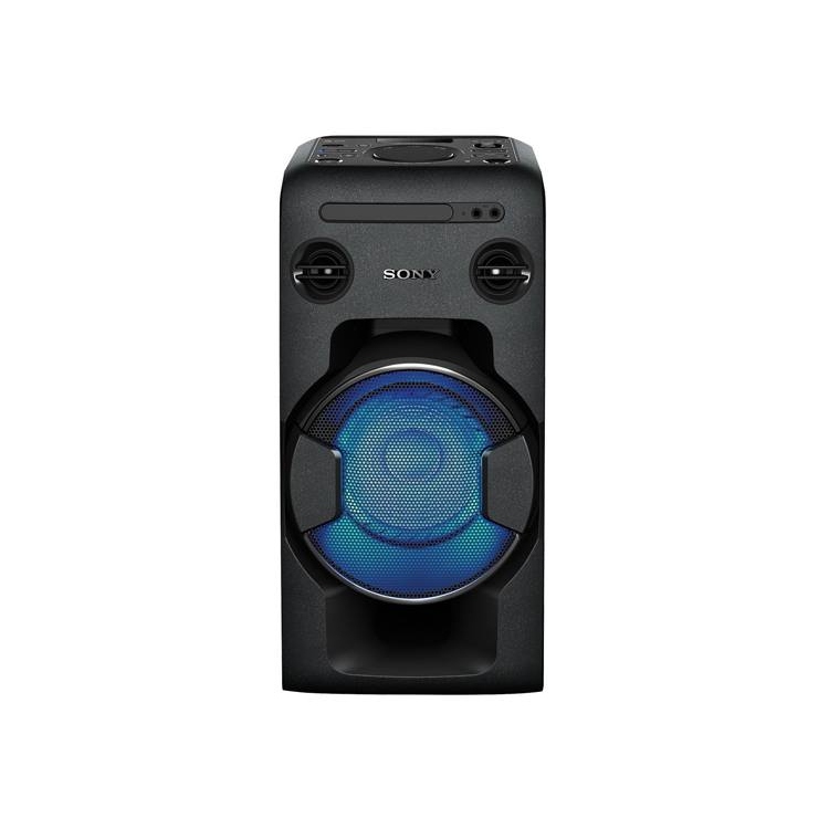 Llévate la fiesta a casa con este compacto sistema de audio de alta potencia de elemento único. Disfruta de un sonido potente en un diseño todo en uno de tamaño reducido y potencia las bajas frecuencias con Mega Bass. Puedes probar efectos de DJ e invitar a tus amigos para montar vuestro karaoke y competir entre vosotros. Con Party Chain, podrás conectar varios sistemas fácilmente para disfrutar del sonido definitivo en tus fiestas.. Características:. Funciones de karaoke para que también cantes. Party Chain te permite ampliar el sistema de altavoces. Personaliza tu configuración con la aplicación SongPal. Las luces LED del altavoz contribuyen a crear un ambiente festivo. Diseño de caja única para la máxima portabilidad. Especificaciones:. La tenología DSEE restaura la calidad de archivos compromidos. Radio FM, Bluetooth/NFC, reproducción de CD y USB. Efectos de sonido de DJ. Graves profundas con Mega Bass. Conexión de varios sistemas con Party Chain. Terminales de entrada: Entrada de audio analógica (1), Entrada de micrófono (2) (6φ), Puerto USB (1), Salida de audio analógico (1)