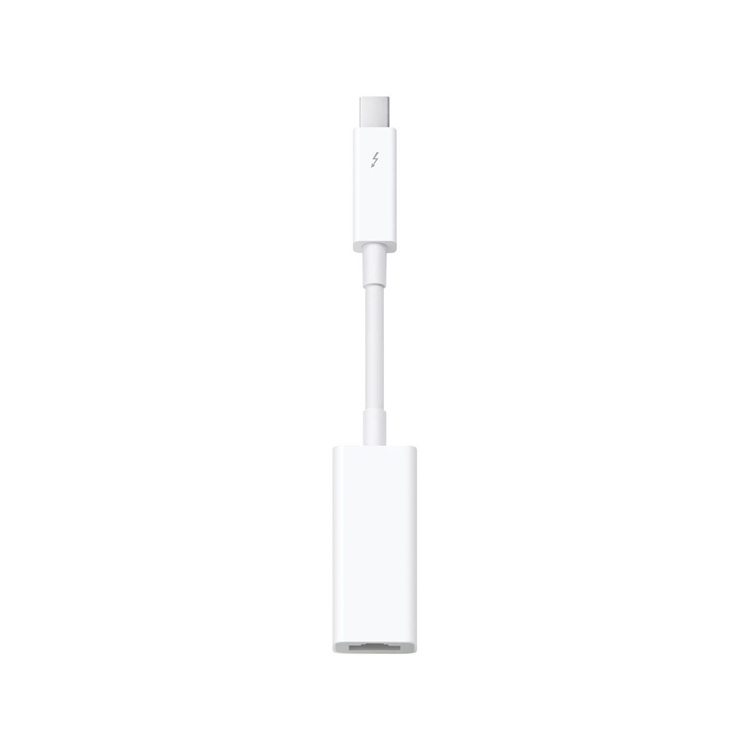 Con el Adaptador Apple de Thunderbolt a Gigabit Ethernet puedes conectarte fácilmente a una red Gigabit Ethernet de alto rendimiento. Este adaptador, pequeño y compacto, se conecta al puerto Thunderbolt de tu Mac para ofrecerte un puerto RJ-45 compatible con redes 10/100/1000BASE-T.. Compatibilidad:. Mac. OS X 10.7.4 o posterior. Ordenador Mac con Thunderbolt. Contenido:. Adaptador de Thunderbolt a Gigabit Ethernet de Apple con cable Thunderbolt incorporado