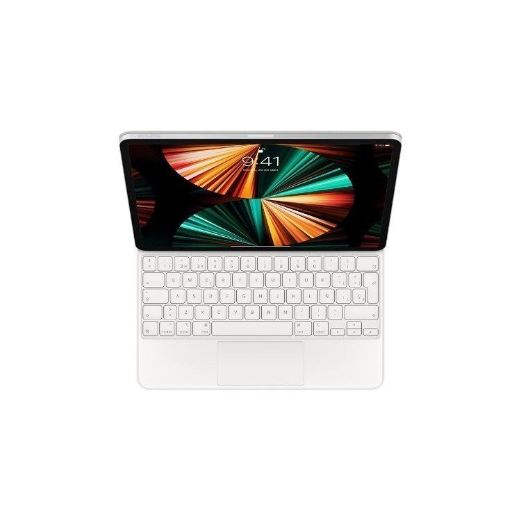 Especificaciones:. . Descripción. . El Magic Keyboard es el compañero perfecto del iPad Pro de 12,9 pulgadas. Es comodísimo para escribir e incorpora un trackpad que abre nuevas posibilidades en iPadOS, un puerto USBC de carga simultánea y protección por ambos lados. Además, su diseño con apoyo flotante te permite conectar el iPad Pro de forma magnética y ajustar el ángulo de la pantalla como prefieras.. . Aspectos destacados. . Teclas retroiluminadas con mecanismo de tijera de 1 mm de recorrido para escribir de forma cómoda y silenciosa.. Diseñado para los gestos Multi-Touch y el cursor en iPadOS.. Ajuste preciso del ángulo de visión de la pantalla.. Puerto USBC para cargar el iPad Pro, lo que permite usar el puerto del dispositivo para otros accesorios.. Al plegarse, se convierte en una funda para proteger el iPad Pro por ambos lados.. . Requisitos del sistema. . iPad Pro de 12,9 pulgadas (3.ª, 4.ª o 5.ª generación) con iPadOS 14.5 o posterior.. . Compatibilidad. . Modelos de iPad. iPad Pro de 12,9 pulgadas (5.ª generación). iPad Pro de 12,9 pulgadas (4.ª generación). iPad Pro de 12,9 pulgadas (3.ª generación)