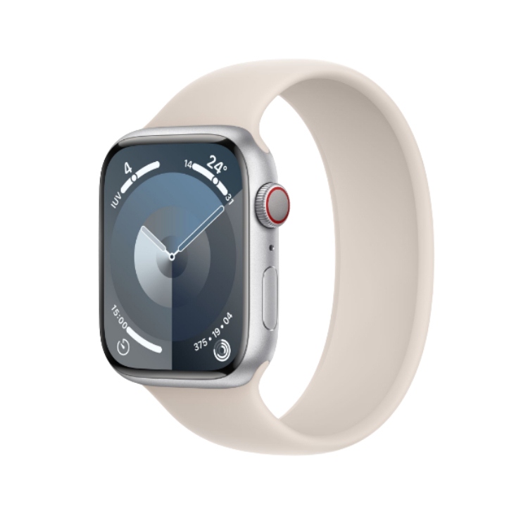 Una mente más brillante. El chip más potente jamás creado para el Apple Watch. Una nueva forma mágica de interactuar con el reloj sin tocarlo. El doble de brillo en la pantalla. Y ahora combinaciones de cajas y correas neutras en carbono.. Nunca subestimes el poder de una mente brillante. . Potencia para ir por delante. El Apple Watch Series 9 lleva un chip creado a medida por Apple para hacerlo más eficiente, rápido y fácil de usar. Estrena una CPU de doble núcleo con 5.600 millones de transistores, un 60 % más que el S8. También un Neural Engine de cuatro núcleos, que procesa las tareas de aprendizaje automático hasta el doble de rápido. Todo esto, por complicado que suene, hace posible que disfrutar de las nuevas prestaciones sea muy simple: como el gesto de doble toque.. . Innovación deslumbrante.. La pantalla avanzada del Series 9 lleva el brillo máximo hasta los 2.000 nits, dos veces más que el Series 8. No solo se ve de lujo a pleno sol, sino que baja a 1 nit cuando hace falta discreción. Perfecto para no dar la nota en el cine.. . Reimaginado.Reluciente.. El nuevo sistema operativo aprovecha cada milímetro de la pantalla del Apple Watch. Casi todas las apps se han rediseñado para mostrar más información de un vistazo. Desde cualquier esfera, solo tienes que girar la Digital Crown para acceder a los widgets del Grupo Inteligente y dar con lo que necesitas. Además, las prestaciones de salud mental y visual te ayudan a cuidar cuerpo y mente desde la muñeca.. . El primer producto Apple neutro en carbono llega puntual. Gracias a los últimos avances en materiales, energía limpia y métodos de envío menos contaminantes, el Apple Watch ahora está disponible en combinaciones de cajas y correas neutras en carbono.. . Información importante de un vistazo. El Apple Watch te ayuda a entender mejor tu salud mental y física. La seguridad y privacidad de tus datos están garantizadas. Y en el caso de que quieras compartirlos con especialistas, amigos o familiares, serás tú quien decida qué y con quién.. . Hora de mirar tu corazón. Comprueba tus pulsaciones con la app Frecuencia Cardiaca y recibe un aviso si están muy por encima o por debajo de los valores normales.. . Mide tu oxígeno en sangre. Una innovación muy alentadora. El Apple Watch Series 9 incorpora una app y un sensor avanzados para que midas tu saturación de oxígeno cuando quieras, o de forma automática a lo largo del día y de la noche. . Tiempo para soñar. La app Sueño no solo cuenta las horas que duermes. También te dice el tiempo que has pasado en las fases de sueño REM, esencial y profundo, y cuántas veces te has despertado. Disfruta de la tierra de los sueños.. . Registra tu estado de ánimo. En la app Mindfulness del Apple Watch puedes escoger imágenes elocuentes para ayudarte a expresar emociones puntuales y tu estado de ánimo diario. Desarrolla una rutina gracias a las notificaciones y complicaciones de la esfera.. . El tiempo vuela, tu reloj también. Con el Apple Watch en la muñeca siempre estás en contacto con lo que te importa. Si tienes un modelo con conexión móvil, ni siquiera te hace falta llevar el iPhone encima para hacer de todo. . La libertad te llama. Contesta una llamada desde un puerto de montaña. Responde un mensaje mientras haces abdominales. Consulta una notificación desde el parque. ¿Y tú teléfono? Pues tan tranquilo en casa.. . Escucha música y podcasts. Apple Music tiene millones de canciones para ponerte las pilas.8 Además, puedes disfrutar de tus podcasts favoritos o entretenerte con un audiolibro. . Pura motivación.. ¿Qué te pide el cuerpo? Tu muñeca es una fuente inagotable de entrenamientos. Empieza el que quieras con un toque y personaliza la vista con los datos que necesites para que nada se te haga cuesta arriba. Como resiste lo que le eches, puedes sudar la camiseta o el maillot a fondo. El Apple Watch nunca te abandona.. . Piernas, core o estiramientos. Este reloj está preparado para todo. Le da lo mismo ejercicios de fuerza o intervalos de alta intensidad que pilates y meditación. El Apple Watch te ofrece montones de formas de entrenar junto con la información más útil.. . Salud de hierro. El grosor del vidrio delantero, la geometría estructural y la base plana del Apple Watch son el secreto de su gran resistencia. Además, puedes sumergirte con él hasta 50 metros de profundidad.. . Pide ayuda. Es tan fácil como llevar tu reloj.. El Series 9 puede llamar al 112 si has tenido un accidente de coche, has sufrido una caída grave o necesitas asistencia urgente.. . Detección de accidentes. El Apple Watch Series 9 puede detectar si has sufrido un accidente de coche grave, y automáticamente llama a los servicios de emergencia, les envía tu ubicación y avisa a los contactos que hayas definido.. . Detección de caídas. El Apple Watch Series 9 detecta si has sufrido una caída brusca y llama de manera automática a los servicios de emergencia si no eres capaz de moverte. Esta prestación está optimizada para la app. . Especificaciones:. . Caja de 41 mm. Aluminio. Altavoz. Micrófono. Digital Crown con respuesta háptica. Botón lateral. Gesto de doble toque^. Pantalla Retina OLED LTPO siempre activa. Pantalla de borde a borde. Vidrio delantero Ion-X (modelos de aluminio). Cristal delantero de zafiro (modelos de acero inoxidable). Hasta 2.000 nits de brillo. Brillo mínimo de 1 nit. SiP S9 con procesador de doble núcleo de 64 bits. Neural Engine de 4 núcleos de Apple. 64 GB de capacidad. Sensor óptico de frecuencia cardiaca de 3.ª generación. Notificaciones de frecuencia cardiaca alta o baja. Fases de sueño. Sensor de temperatura3. Brújula. Altímetro siempre activo. Acelerómetro de fuerza g alta. Fuerzas de hasta 256 g con detección de caídas y de accidentes. Giroscopio de alto rango dinámico. Sensor de luz ambiental. Emergencia SOS4. Llamadas de emergencia internacionales5. Detección de accidentes4. Detección de ca