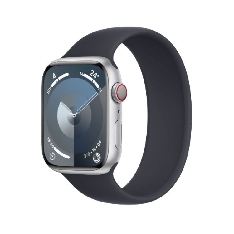 Una mente más brillante. El chip más potente jamás creado para el Apple Watch. Una nueva forma mágica de interactuar con el reloj sin tocarlo. El doble de brillo en la pantalla. Y ahora combinaciones de cajas y correas neutras en carbono.. Nunca subestimes el poder de una mente brillante. . Potencia para ir por delante. El Apple Watch Series 9 lleva un chip creado a medida por Apple para hacerlo más eficiente, rápido y fácil de usar. Estrena una CPU de doble núcleo con 5.600 millones de transistores, un 60 % más que el S8. También un Neural Engine de cuatro núcleos, que procesa las tareas de aprendizaje automático hasta el doble de rápido. Todo esto, por complicado que suene, hace posible que disfrutar de las nuevas prestaciones sea muy simple: como el gesto de doble toque.. . Innovación deslumbrante.. La pantalla avanzada del Series 9 lleva el brillo máximo hasta los 2.000 nits, dos veces más que el Series 8. No solo se ve de lujo a pleno sol, sino que baja a 1 nit cuando hace falta discreción. Perfecto para no dar la nota en el cine.. . Reimaginado.Reluciente.. El nuevo sistema operativo aprovecha cada milímetro de la pantalla del Apple Watch. Casi todas las apps se han rediseñado para mostrar más información de un vistazo. Desde cualquier esfera, solo tienes que girar la Digital Crown para acceder a los widgets del Grupo Inteligente y dar con lo que necesitas. Además, las prestaciones de salud mental y visual te ayudan a cuidar cuerpo y mente desde la muñeca.. . El primer producto Apple neutro en carbono llega puntual. Gracias a los últimos avances en materiales, energía limpia y métodos de envío menos contaminantes, el Apple Watch ahora está disponible en combinaciones de cajas y correas neutras en carbono.. . Información importante de un vistazo. El Apple Watch te ayuda a entender mejor tu salud mental y física. La seguridad y privacidad de tus datos están garantizadas. Y en el caso de que quieras compartirlos con especialistas, amigos o familiares, serás tú quien decida qué y con quién.. . Hora de mirar tu corazón. Comprueba tus pulsaciones con la app Frecuencia Cardiaca y recibe un aviso si están muy por encima o por debajo de los valores normales.. . Mide tu oxígeno en sangre. Una innovación muy alentadora. El Apple Watch Series 9 incorpora una app y un sensor avanzados para que midas tu saturación de oxígeno cuando quieras, o de forma automática a lo largo del día y de la noche. . Tiempo para soñar. La app Sueño no solo cuenta las horas que duermes. También te dice el tiempo que has pasado en las fases de sueño REM, esencial y profundo, y cuántas veces te has despertado. Disfruta de la tierra de los sueños.. . Registra tu estado de ánimo. En la app Mindfulness del Apple Watch puedes escoger imágenes elocuentes para ayudarte a expresar emociones puntuales y tu estado de ánimo diario. Desarrolla una rutina gracias a las notificaciones y complicaciones de la esfera.. . El tiempo vuela, tu reloj también. Con el Apple Watch en la muñeca siempre estás en contacto con lo que te importa. Si tienes un modelo con conexión móvil, ni siquiera te hace falta llevar el iPhone encima para hacer de todo. . La libertad te llama. Contesta una llamada desde un puerto de montaña. Responde un mensaje mientras haces abdominales. Consulta una notificación desde el parque. ¿Y tú teléfono? Pues tan tranquilo en casa.. . Escucha música y podcasts. Apple Music tiene millones de canciones para ponerte las pilas.8 Además, puedes disfrutar de tus podcasts favoritos o entretenerte con un audiolibro. . Pura motivación.. ¿Qué te pide el cuerpo? Tu muñeca es una fuente inagotable de entrenamientos. Empieza el que quieras con un toque y personaliza la vista con los datos que necesites para que nada se te haga cuesta arriba. Como resiste lo que le eches, puedes sudar la camiseta o el maillot a fondo. El Apple Watch nunca te abandona.. . Piernas, core o estiramientos. Este reloj está preparado para todo. Le da lo mismo ejercicios de fuerza o intervalos de alta intensidad que pilates y meditación. El Apple Watch te ofrece montones de formas de entrenar junto con la información más útil.. . Salud de hierro. El grosor del vidrio delantero, la geometría estructural y la base plana del Apple Watch son el secreto de su gran resistencia. Además, puedes sumergirte con él hasta 50 metros de profundidad.. . Pide ayuda. Es tan fácil como llevar tu reloj.. El Series 9 puede llamar al 112 si has tenido un accidente de coche, has sufrido una caída grave o necesitas asistencia urgente.. . Detección de accidentes. El Apple Watch Series 9 puede detectar si has sufrido un accidente de coche grave, y automáticamente llama a los servicios de emergencia, les envía tu ubicación y avisa a los contactos que hayas definido.. . Detección de caídas. El Apple Watch Series 9 detecta si has sufrido una caída brusca y llama de manera automática a los servicios de emergencia si no eres capaz de moverte. Esta prestación está optimizada para la app. . Especificaciones:. . Caja de 45 mm. Aluminio. Altavoz. Micrófono. Digital Crown con respuesta háptica. Botón lateral. Gesto de doble toque^. Pantalla Retina OLED LTPO siempre activa. Pantalla de borde a borde. Vidrio delantero Ion-X (modelos de aluminio). Cristal delantero de zafiro (modelos de acero inoxidable). Hasta 2.000 nits de brillo. Brillo mínimo de 1 nit. SiP S9 con procesador de doble núcleo de 64 bits. Neural Engine de 4 núcleos de Apple. 64 GB de capacidad. Sensor óptico de frecuencia cardiaca de 3.ª generación. Notificaciones de frecuencia cardiaca alta o baja. Fases de sueño. Sensor de temperatura3. Brújula. Altímetro siempre activo. Acelerómetro de fuerza g alta. Fuerzas de hasta 256 g con detección de caídas y de accidentes. Giroscopio de alto rango dinámico. Sensor de luz ambiental. Emergencia SOS4. Llamadas de emergencia internacionales5. Detección de accidentes4. Detección de ca