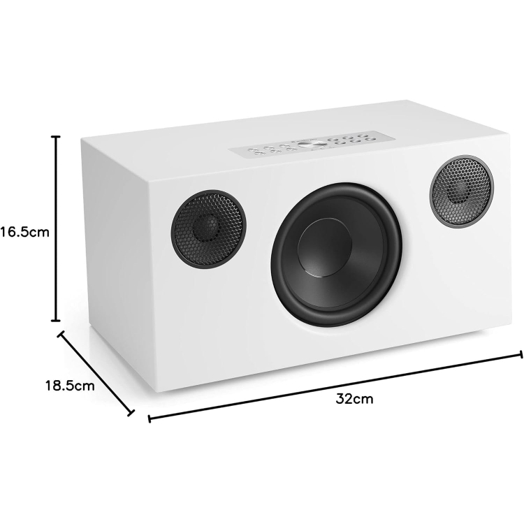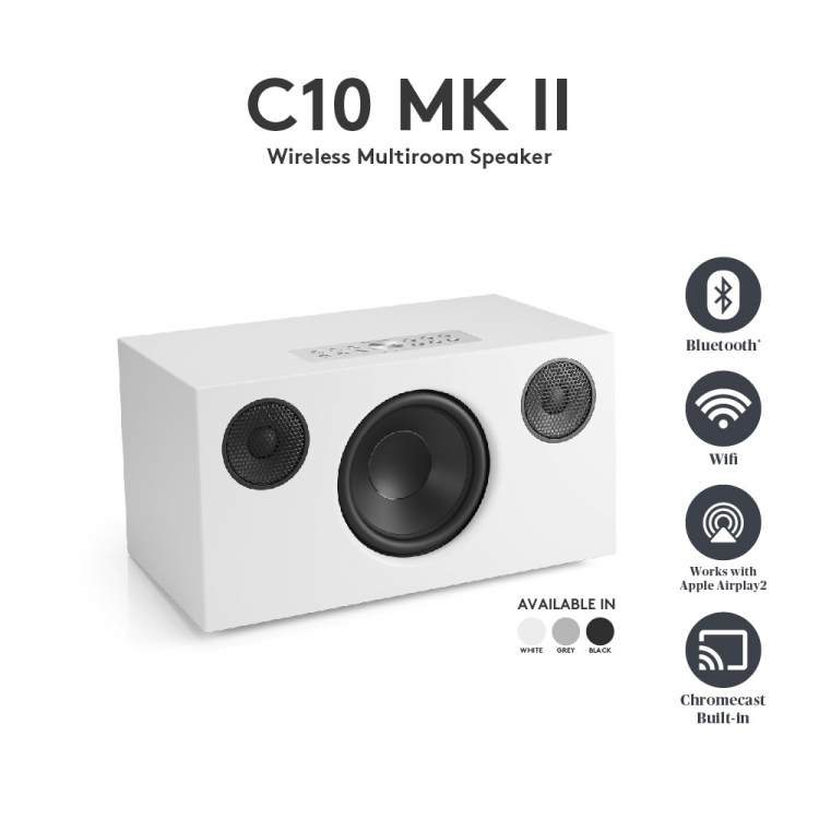 Audio Pro C10 MKII W WHITE. Un campeón indiscutible del sonido HiFi multiroom. Compacto y fácil de colocar, este altavoz ofrece una potencia impresionante. El C10 MkII W permite escuchar música en varias habitaciones mediante nuestra nueva aplicación Audio Pro, además de ser compatible con Google Cast, AirPlay 2, Spotify Connect y Tidal Connect, y ofrece un sonido aún mejor que su predecesor, el C10 MkII. Altavoz multiroom con una nueva aplicación fácil de usar. 6 preajustes. Parte frontal de tela desmontable.
