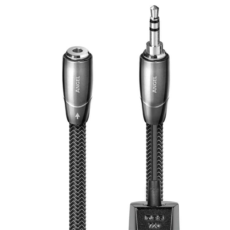 AudioQuest Ángel 3.5mm Mini M > F. Cable de interconexión de audio. Conecte una amplia gama de dispositivos de audio con este cable analógico AudioQuest Angel de 3.5 mm, meticulosamente diseñado para ofrecer una flexibilidad y versatilidad excepcionales. Los conductores de plata de superficie perfecta sólida (PSS) minimizan la distorsión, el aislamiento de tubo de aire FEP preserva los contrastes dinámicos, y una disipación de ruido basada en carbono disipa eficientemente el ruido de alta frecuencia para una música más limpia, clara y naturalmente hermosa. Longitudes disponibles: 0.6m - 20m (el precio varia). El precio indicado es del cable de 0.6 m = 1 pie 11 pulgadas.