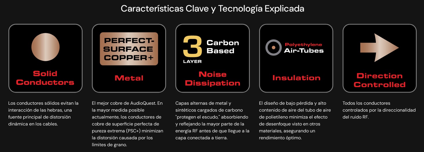 Cualquier material sólido adyacente a un conductor es en realidad parte de un circuito imperfecto. Los materiales de aislamiento de cables y de las placas de circuito absorben energía. Parte de esta energía se almacena y luego se libera como distorsión. Sin embargo, AudioQuest utiliza Insulación con Tubo de Aire de Polietileno en ambos conductores, para una mayor estabilización de la geometría y una claridad mejorada. Debido a que el aire absorbe casi nada de energía y el Polietileno tiene bajas pérdidas y un perfil de distorsión benigno, la Insulación con Tubo de Aire de Polietileno, con su alto contenido de aire, causa mucho menos el efecto de desenfoque común a otros materiales.