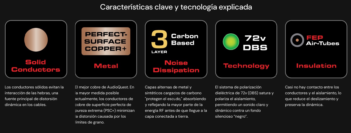 Los conductores sólidos evitan la interacción eléctrica y magnética entre las hebras. El Cobre Sólido PSC+ minimiza la distorsión causada por los límites de los granos y maximiza la disipación lineal del ruido RF.