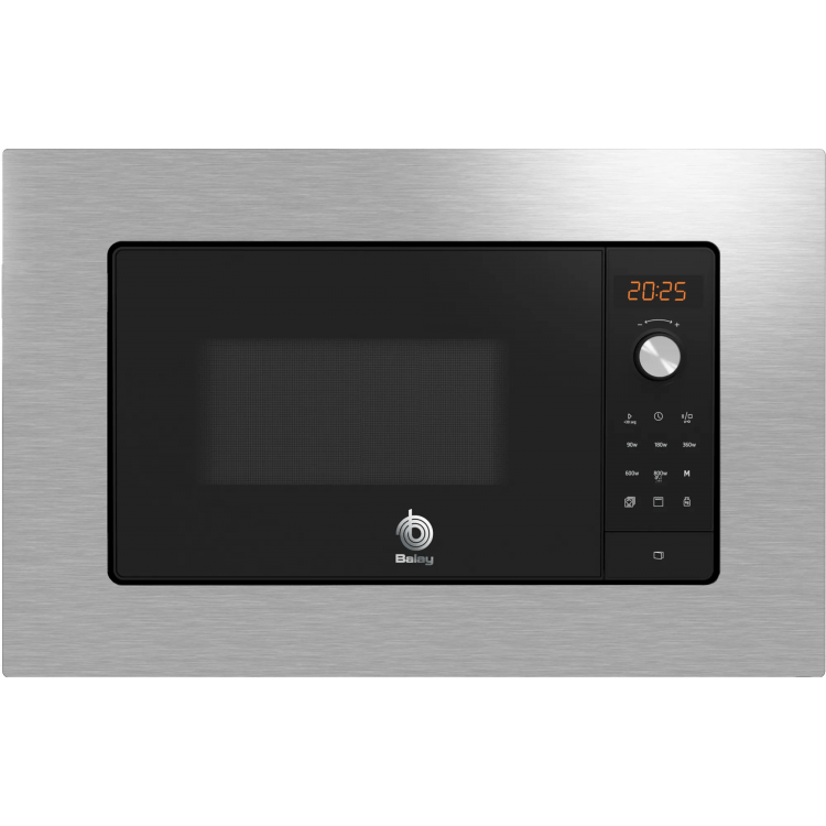 Serie Acero. Microondas Integrable Con Marco. Ancho 60 Cm. BALAY, 3CG6142X3, Microondas, electrónico, Encastrable con marco, 38 cm., 20 l., 5 F., Aqualisis, Ap. lateral izquierda, Negro/marco inox, 8 recetas, Programación electrónica de paro, Plato giratorio 27 cm., Con grill.