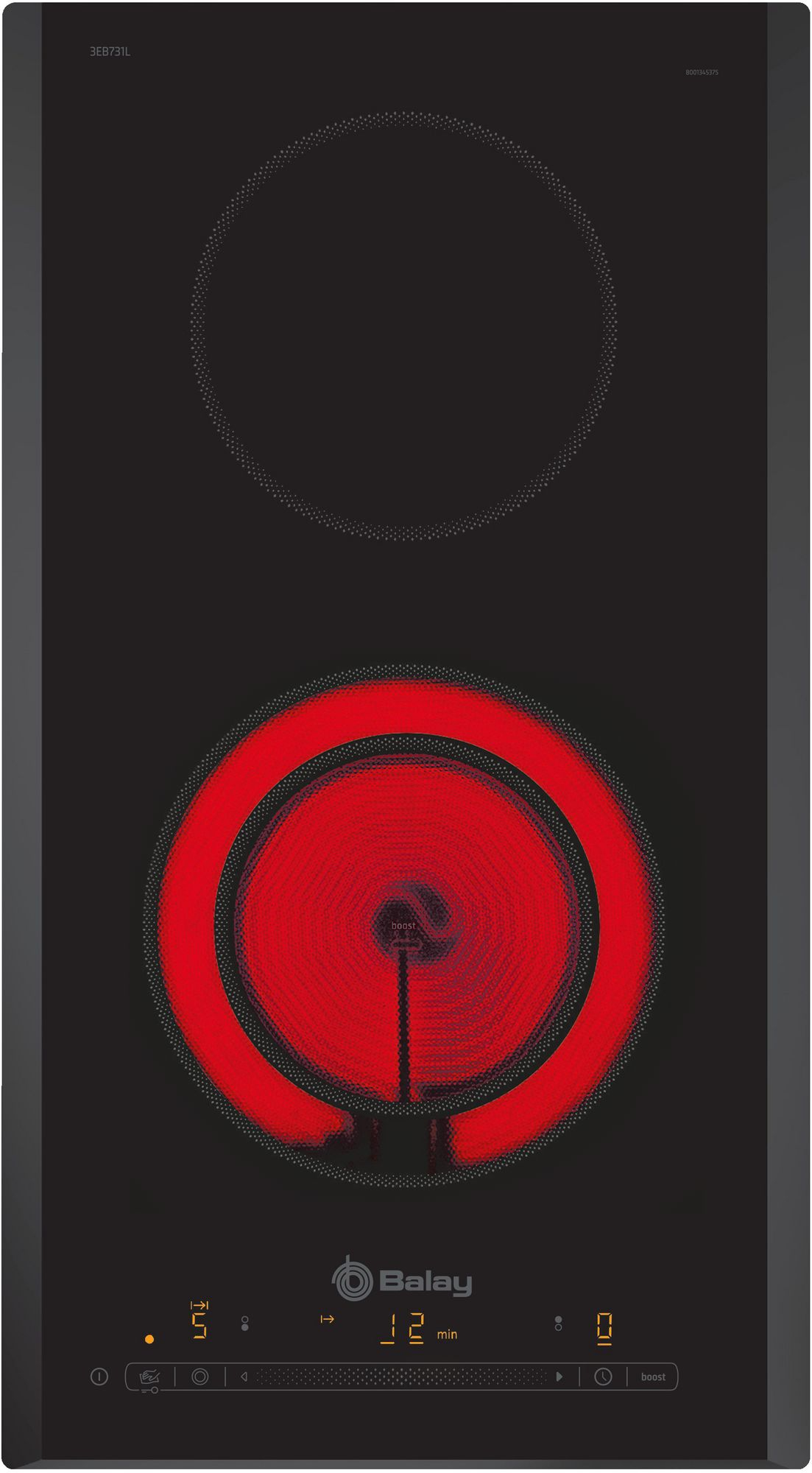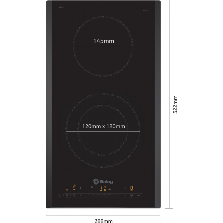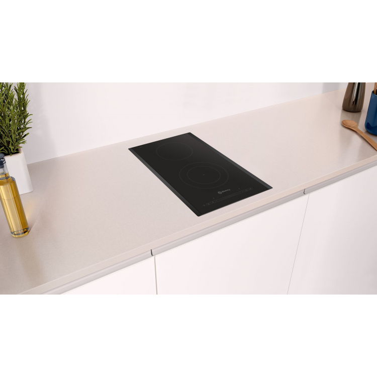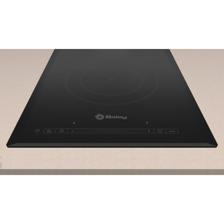 Placa Vitro 30cm BALAY 3EB731LQ con 2 zonas de cocción BALAY, 3EB731LQ, Encimera, Dominó, Encastrable, 30 cm., 2 zonas, Negra/Biselada, 2 vitro, una zona doble, Línea Profesional, Control Deslizante, boost