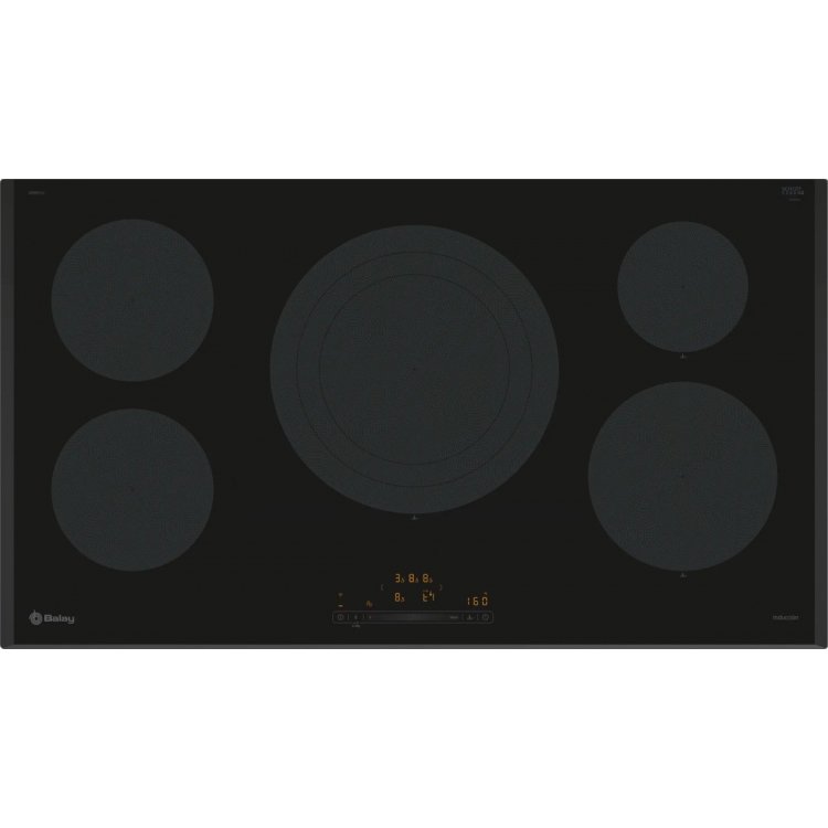Placas Inducción Ancho 90 BALAY, 3EB997LH, Encimera, Inducción, Encastrable, 90 cm., 5 zonas, HC, Negra/Biselada, Nuevo Control Deslizante, 5 zonas, zona de 32 cm., control de temperatura en 11 niveles en 4 zonas, botón Favorito.