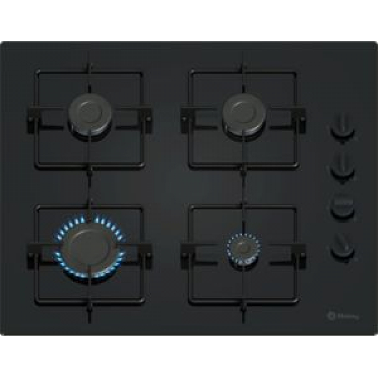 Placa Gas 60cm BALAY 3ETG464SB con 4 quemadores BALAY, 3ETG464SB, Encimera, Gas, Encastrable, 60 cm., 4 quemadores, Cristal templado negro, Gas Stop, parrillas esmaltadas, autoencendido, mandos derecha.