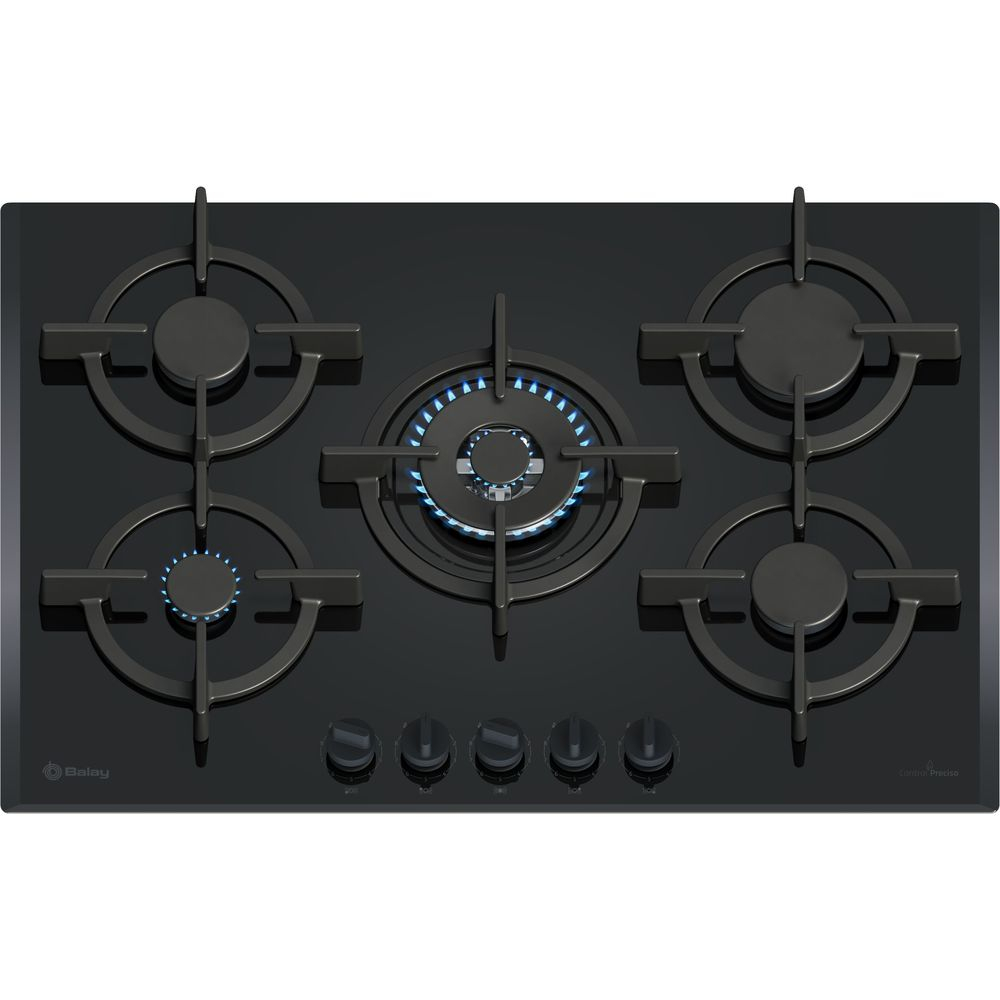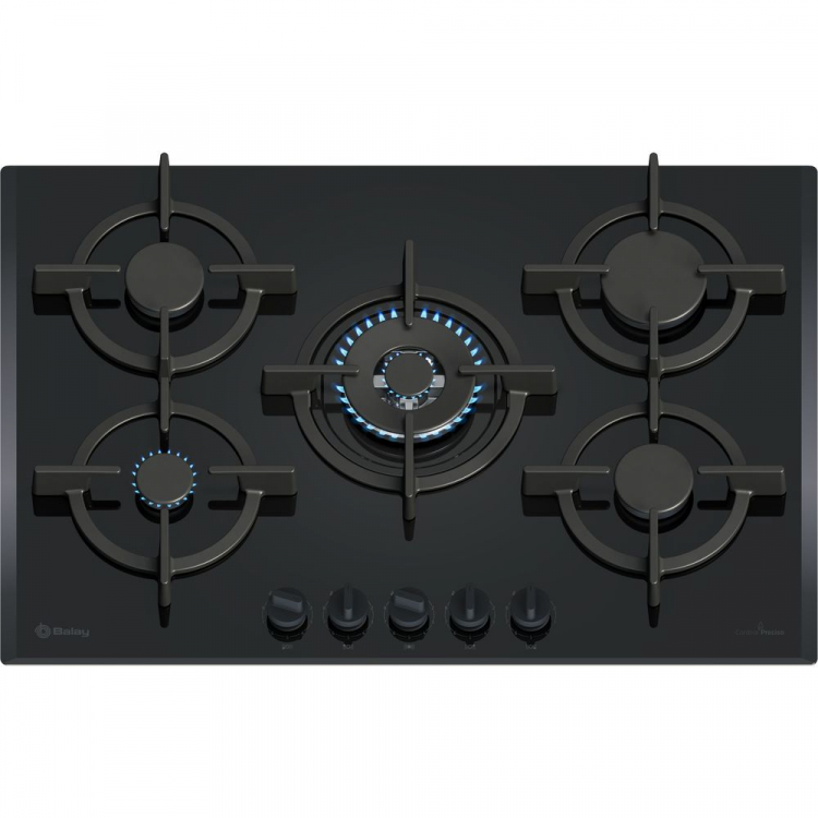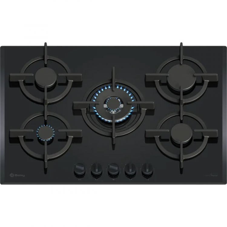 Placa Gas 75cm BALAY 3ETG676RB con 5 quemadores BALAY, 3ETG676RB, Encimera, Gas, Encastrable, 75 cm., 5 quemadores, Cristal templado negro, Control preciso de llama 9 niveles, wok 4 kW., Gas Stop, parrillas hierro fundido aptas lavavajillas, autoencendido, mandos extraibles, biselada.