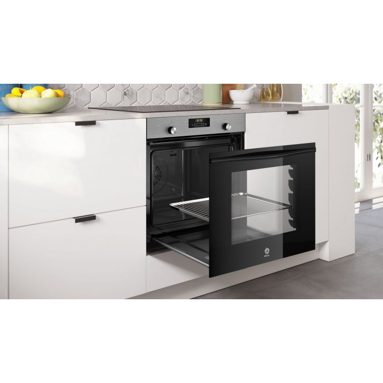 Serie Acero.Nuevos hornos con Control Comfort BALAY, 3HB413CX3, Horno, Multifunción, A+, Encastrable, 60 cm., 71 l., 7 F., Aqualisis, Puerta extraíble, Cristal negro/inox., Control Comfort, Reloj electrónico con programación de inicio y paro, Mandos ocultables.