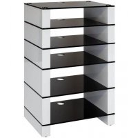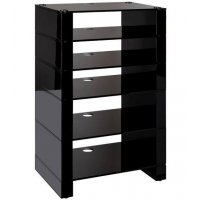 BLOCK STAX 960 Black Gloss Glass Etched. 1 unidad. Disponible en una selección de cuatro acabados: negro brillante, blanco brillante, nogal o roble natural y, con estantes de vidrio translúcido o negro.