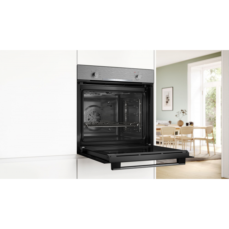 Horno Multifunción BOSCH HBA510BR4 Limpieza Aqualisis 71L Negro. Serie 2 Horno, Multifunción, A, Integrable, 60 cm., 71 l., 5 F., Ap. Abatible, Cristal negro/inox, Mandos fijos