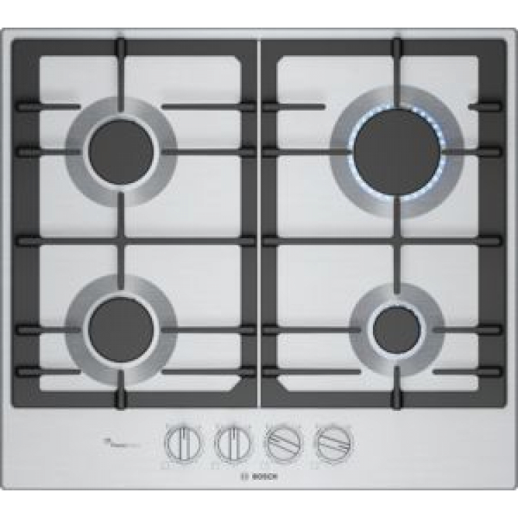Placa Gas 60cm BOSCH PCP6A5I90 Serie 6 con 4 quemadores. Placas de gas BOSCH, PCP6A5I90, Encimera, Gas, Encastrable, 60 cm., 4 quemadores, Acero, FlameSelect, gasStop, parrillas hierro fundido aptas lavavajillas, autoencendido.