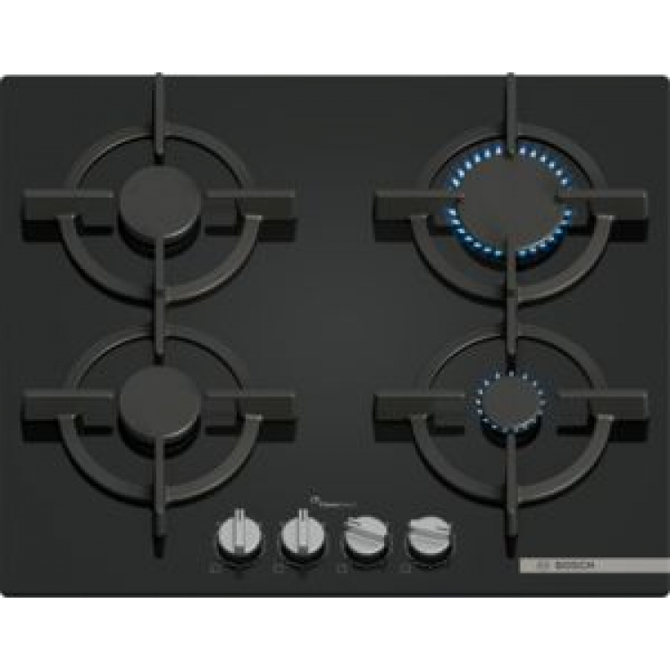 Placa Gas 60cm BOSCH PPP6A6I10 Serie 6 con 4 quemadores. Placas de gas BOSCH, PPP6A6I10, Encimera, Gas, Encastrable, 60 cm., 4 quemadores, Cristal templado negro, FlameSelect, gasStop, parrillas hierro fundido aptas lavavajillas, autoencendido.