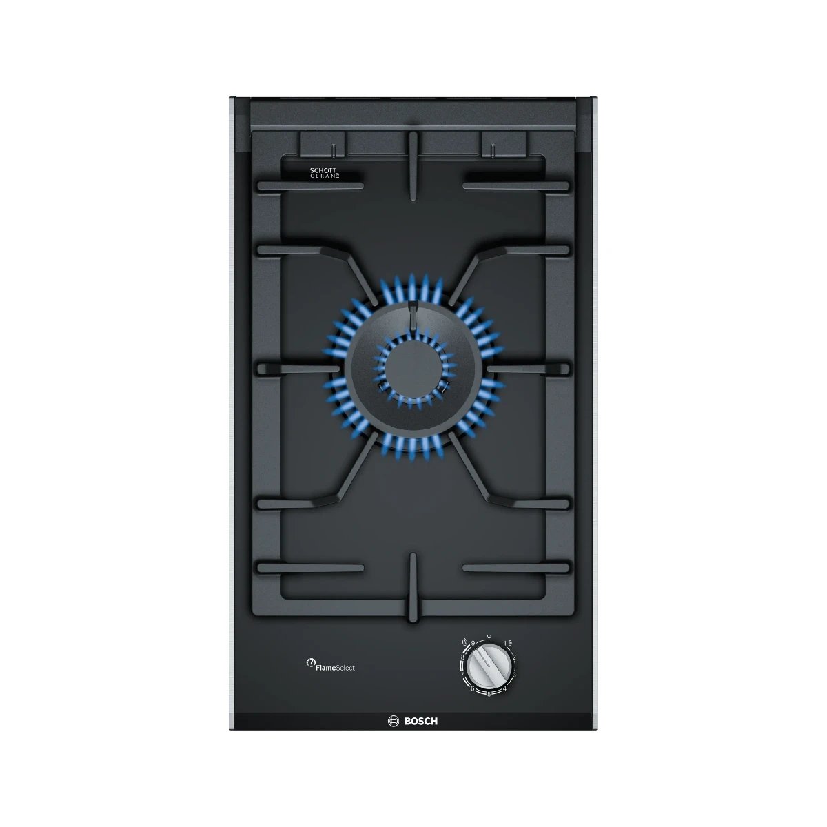 Placa modular Gas 30cm BOSCH PRA3A6B70 1 Zonas dominó. Placas dominó PRA3A6B70, Encimera, Modular, Encastrable, 30 cm., 1 quemador, Cristal vitrocerámico negro, terminación Premium, FlameSelect, Wok de gas 6 kW con regulación dual de la llama, Gas Stop, autoencendido, parrilla hierro fundido lavable en lavavajillas