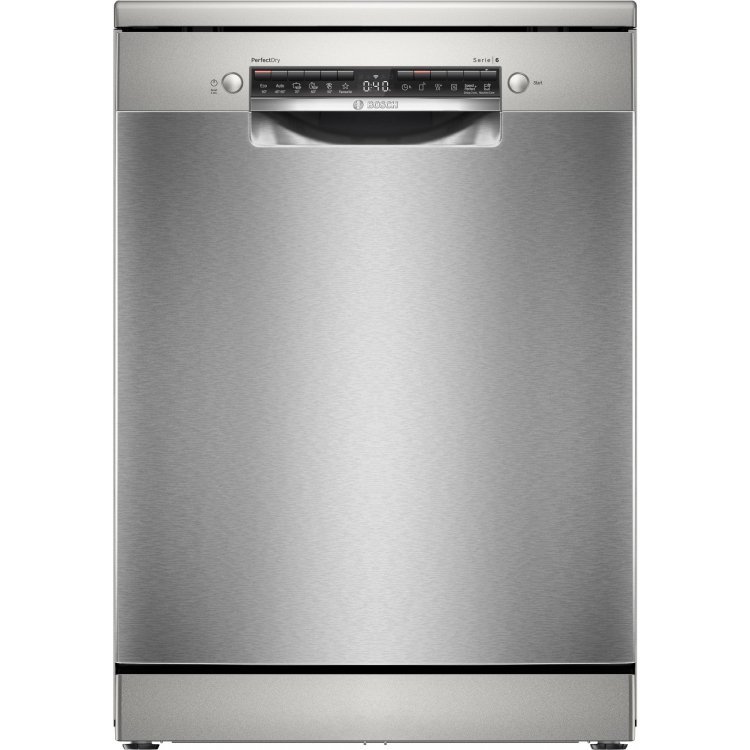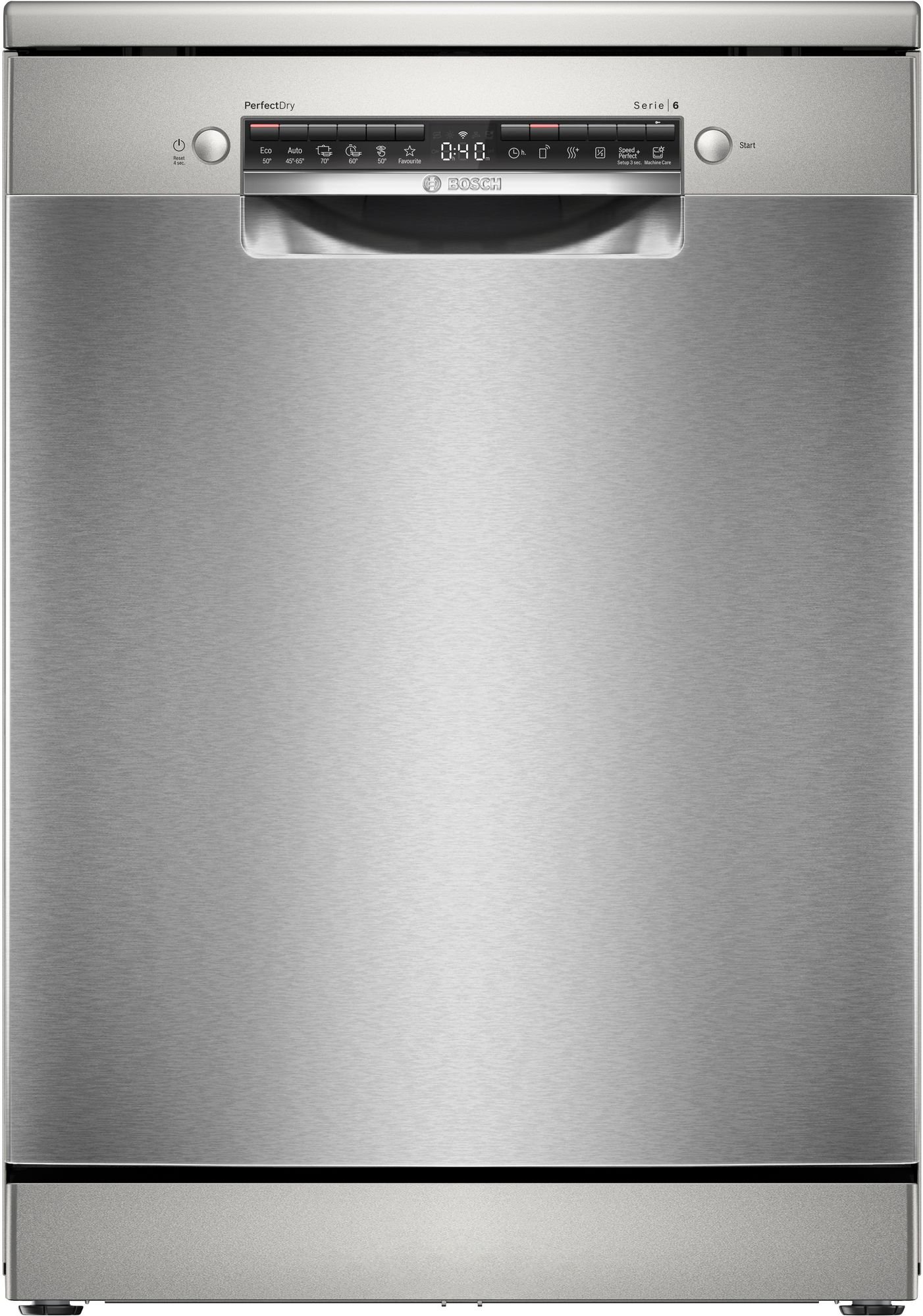 Serie 6, Lavavajillas de libre instalación, 60 cm, Acero inoxidable. BOSCH SMS6TCI00E. Eficiencia Energética Clase A: la clase de menor consumo de energía gracias a la tecnología de secado por zeolitas. Resultados de lavado y secado perfectos!!! Eficiencia Energética Clase A: la clase de menor consumo de energía. Home Connect: controla tu lavavajillas a distancia o con la voz. Lavavajillas Bosch sostenibles gracias a la múltiple tecnología que incorporan. Tecnología ActiveWater consumo respetuoso de agua y energía garantizando unos resultados excelentes de limpieza. Motor EcoSilence: súper eficiente y silencioso. Silence Plus: el lavavajillas silencioso de 44 dB.