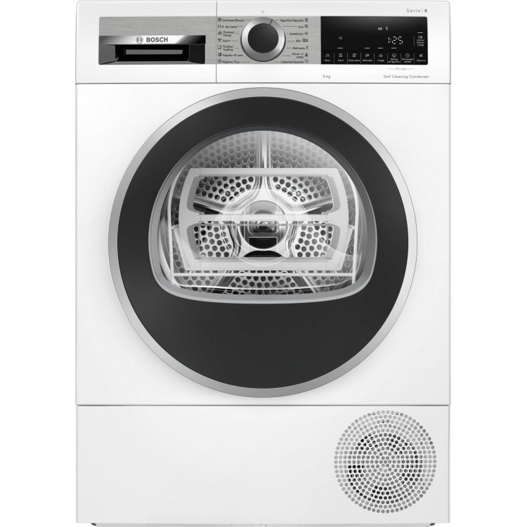 Secadora Bomba de Calor BOSCH WQG245D1ES Clase C 9Kg. Serie 6 BOSCH, WQG245D1ES, Serie 6, Secadora, Bomba de calor, C, Libre instalación, 60 cm. , 9 kg, Blanco, Display LED, CondAutolimpiante, luz, cesto, conexión a desagüe, tambor inox, puerta cristal, P+C