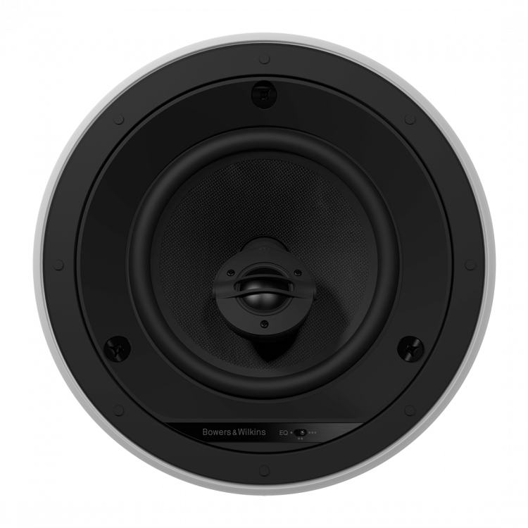 Bowers & Wilkins CCM664. Altavoz para empotrar en techo. Sistema de 2 vías/2 altavoces. Tweeter de 25 mm con cúpula blanda, variable en ángulo de 0 – 30º. Altavoz de medios/graves de 150 mm de diámetro con cono de fibras de vidrio entrelazadas. Selector EQ. Respuesta en frecuencia de 45-35.000 Hz, +/-6 dB. Sensibilidad de 88 dB/W/m. Impedancia nominal de 8 ohmios (mínima de 4’5 ohmios). Potencia de ataque comprendida entre 25 y 130 vatios continuos. Dimensiones del marco: 240 mm de diámetro. Dimensiones del corte: 202 mm de diámetro. Profundidad mínima: 133 mm desde la superficie del techo. Saliente de 4 mm. Acabado: Blanco semi-mate. PRECIO PAREJA
