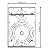 Bowers & Wilkins CWM362. Altavoz para empotrar en pared. Sistema de 2 vías/2 altavoces. Tweeter de cúpula blanda de 25 mm. Altavoz de medios/graves de 160 mm de diámetro con cono de polipropileno. Respuesta en frecuencia de 50-30.000 Hz, +/-6 dB. Sensibilidad de 89 dB/W/m. Impedancia nominal de 8 ohmios (mínima de 5 ohmios). Potencia de ataque máxima 80 vatios continuos. Altura del marco: 315 mm. Anchura del marco: 221 mm. Altura del corte: 279 mm. Anchura del corte: 185 mm. Profundidad mínima: 76 mm desde la superficie del techo. Acabado: Blanco semi-mate.