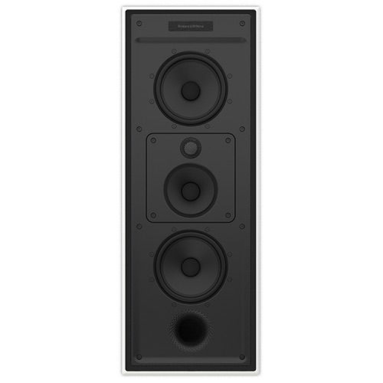 Bowers & Wilkins CWM7.4 S2. Caja acústica empotrable en pared. Sistema Bass-Reflex de 3 vías / 5 altavoces. Tweeter de 25 mm con cúpula de carbono. 2 altavoces de medios de 100mm de Continuum. 2 altavoces de graves de 150 mm de diámetro con fibra de aramida y perfil de papel. Respuesta en frecuencia de 43-33.000 Hz, +/-6 dB. Sensibilidad de 86 dB/W/m. Impedancia nominal de 8 ohmios (mínima de 4,9 ohmios). Potencia de ataque comprendida entre 25 y 150 vatios continuos. Altura del marco: 625 mm. Anchura del marco: 175 mm. Altura del corte: 597 mm. Anchura del corte: 147 mm. Profundidad mínima: 92,5mm desde la superficie de la pared. Saliente de 6 mm. Acabado: Blanco semi-mate. PRECIO UNIDAD