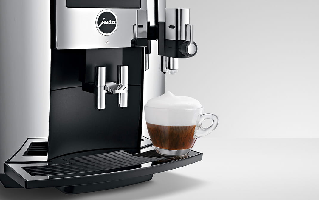 El característico diseño de JURA ofrece precisión y calidad hasta en los detalles. El nuevo vaporizador profesional de espuma fina de la S8 está fabricado con materiales de alta calidad y es un buen ejemplo de tacto y apariencia excelentes. Desarrollada especialmente para la preparación de especialidades de café con leche y espuma de leche, le permite disfrutar del Latte Macchiato y otras especialidades con una espuma de leche de la mejor calidad. El control es más fácil que nunca gracias a los gráficos y las modernas animaciones del visualizador.
