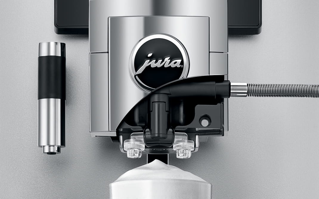 La conservación de la X10 es tan intuitiva como su manejo. Los programas de limpieza y enjuague integrados, en combinación con los productos de conservación JURA originales, garantizan una higiene y limpieza con certificación TÜV. Incluso la limpieza del sistema de leche de la X10 está automatizada y funciona pulsando un botón. La salida combinada maciza se desmonta en pocos pasos. Las salidas de leche dispuestas en la parte interior delantera son cómodamente accesibles, por lo que pueden cambiarse con facilidad si fuera necesario.