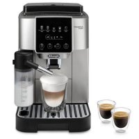 Cafetera superautomática Magnifica Start con leche. Botones suaves al tacto con iconos blancos y negros. 5 recetas(Espresso, café, cappuccino, latte Macchiatto, agua caliente). Color negro metalizado.