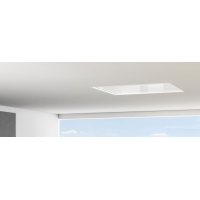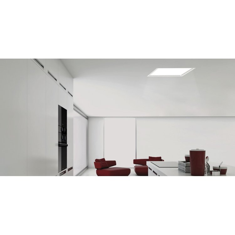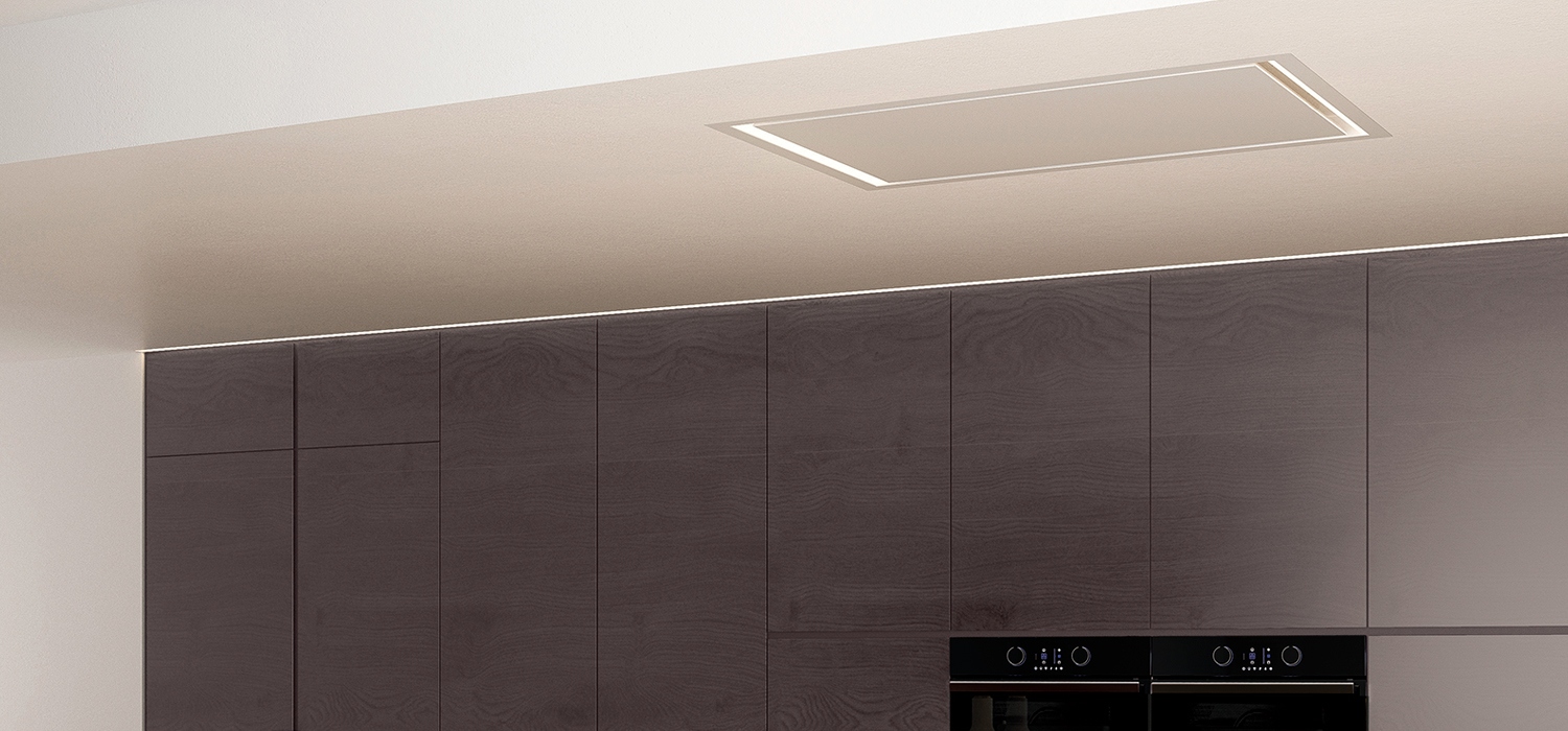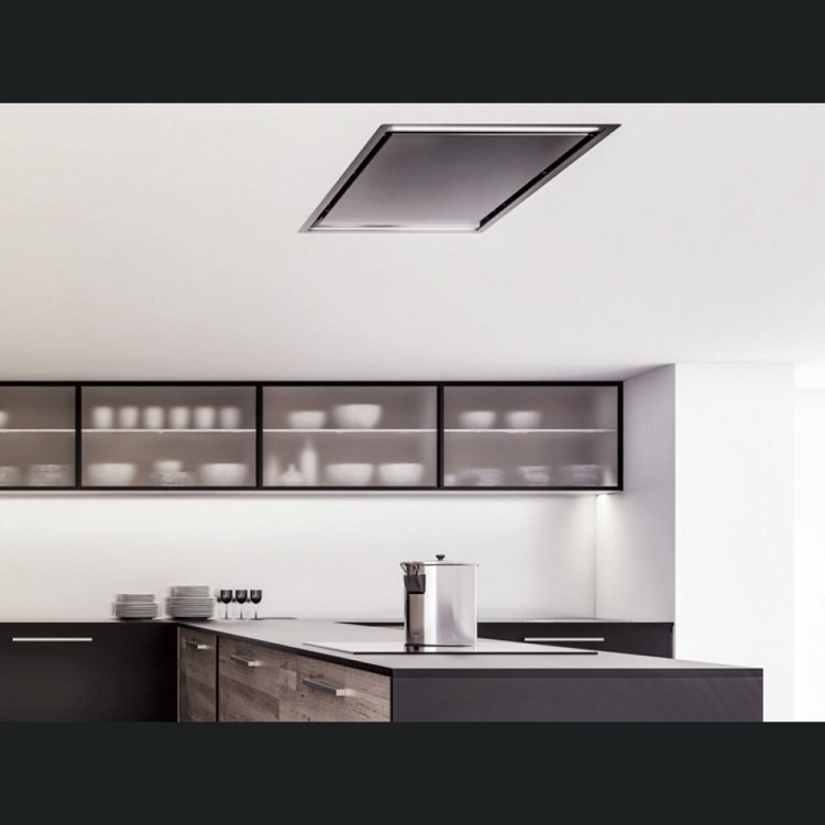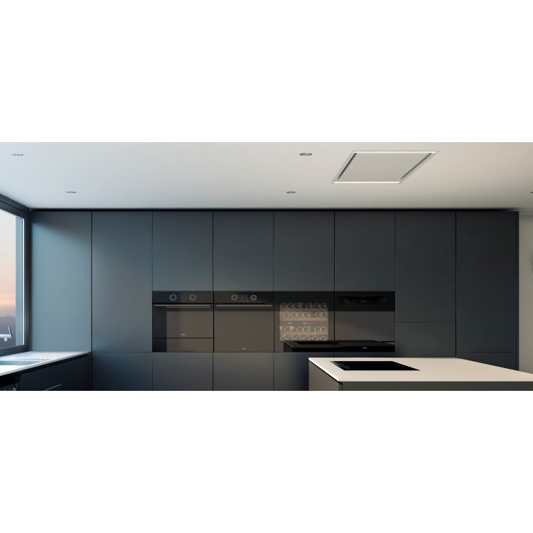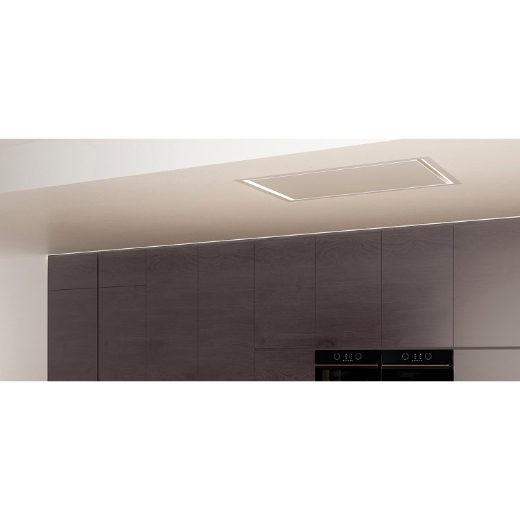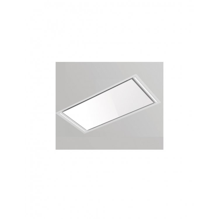 Campana de techo PANDO E297 de 120 cm motor V1130, salida 15 cm . Elegancia y discreción. en Cristal blanco.