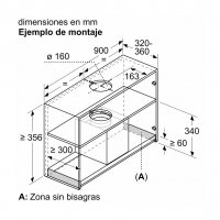 Campana Decorativa Integrable BALAY, 3BD997GN, Campana, Decorativa integrable, B, Encastrable, 90 cm., 749 m3/h, Cuerpo y cristal negro, Control electrónico iluminado, inicio con apert cristal, filtros de aluminio, LEDs