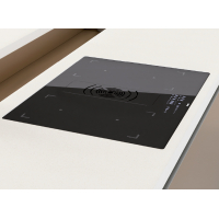 Campana decorativa Integración PANDO E-391. Campana integrada en la placa de cocción Cristal negro. Instalación sobre encimera o encastrada.