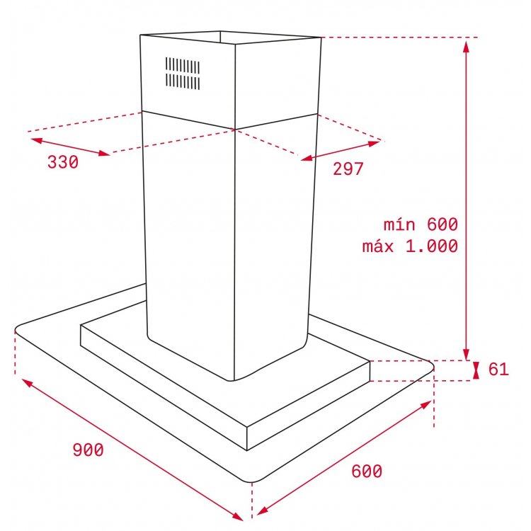 Campanas - Decorativas Techo E Isla CAMPANA DG3 ISLA 985 INOX - Motor blindado doble ecopower, A, 796m3, 52dB, 4 velocidades, mandos electr. retroiluminados, 4 leds, isla cristal 90cm