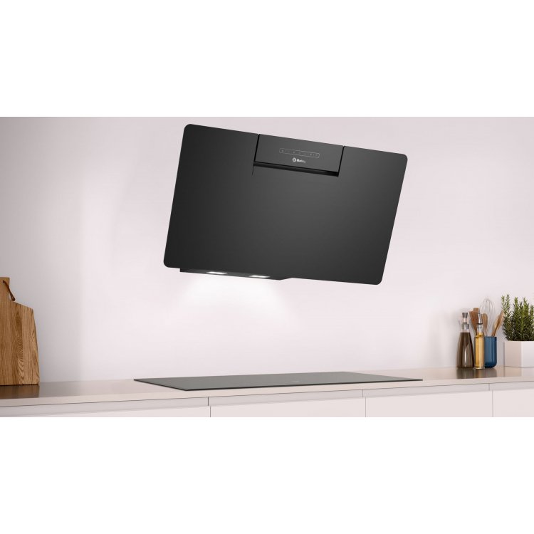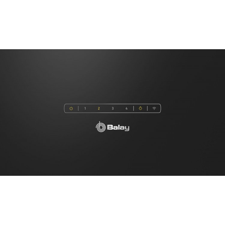 Campanas Decorativas Pared BALAY, 3BC587GNH, Campana, Pared inclinada, A+, Encastrable, 80 cm., 768 m3/h, HC, Cristal negro, Motor alta eficiencia, extracción automática, control táctil, asp. perimetral e inferior, LEDs, conducto negro.