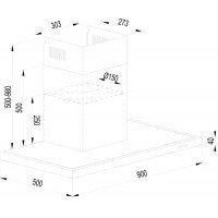 Campana Decorativa Pared Campana Decorativa Horizontal Blanco, 90 cm, Pulsador, Caudal 647,7 m3/h, 165W, 3 Velocidades, 3 X Filtro de Aluminio, Filtro Carbón, Eficiencia Energética A - Medidas: 500X900X290