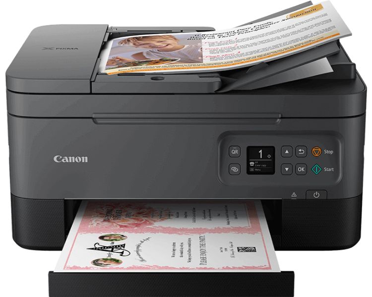 Especificaciones:. . Funciones. . Wi-Fi, impresión, copia, escaneo y nube. . Especificaciones de impresión. . Resolución de impresión: Hasta 4800 2 x 1200 ppp. Tecnología de impresión: 2 cartuchos FINE (negro y color). Velocidad de impresión en blanco y negro: Aprox. 13,0 ipm. Velocidad de impresión en color: Aprox. 6,8 ipm. Velocidad de impresión de fotografías: 10 x 15 cm sin bordes: aprox. 43 segundos. Impresión sin bordes: Sí (A4, B5, Carta, 20 x 25 cm, 13 x 18 cm, 10 x 15 cm, 13 x 13 cm, 8,9 x 8,9 cm, 17,5 x25 cm, 9,1 x 5,5 cm). Impresión a dos caras: Impresión automática a doble cara (A4, A5, B5, carta: papel normal). Cartuchos y rendimientos. . Cartuchos de tinta estándar:. PG-560 (negro). CL-561 (color). Cartuchos de tinta XL opcionales:. PG-560XL (negro). CL-561XL (color). Rendimiento del cartucho (papel normal): . Impresión de documentos en color A4. Negro: 180 páginas. Negro XL: 400 páginas. Color: 180 páginas. Color XL: 300 páginas. Rendimiento del cartucho (impresión de fotos):. Fotografías de 10 x 15 cm. Negro: 1408* fotografías. Negro XL: 3252* fotografías. Color: 76 fotografías. Color XL: 118 fotografías. * Rendimiento adicional estimado. Compatibilidad de papel. . Tipos de papel:. Papel normal. Papel Canon de Alta Resolución (HR-101N). Canon Platinum Pro (PT-101). Canon Fotográfico con Brillo II (PP-201). Canon Pro brillante (LU-101). Canon Plus Satinado (SG-201). Canon «Uso Diario» (GP-501). Canon mate (MP-101). Transfer para camisetas. Sobres. Etiquetas fotográficas adhesivas extraíbles (RP-101). Papel fotográfico magnético (MG-101). Tarjeta de felicitación (fabricada por Avery y RedRiverPaper). Cartulina (fabricada por Neenah Paper e INKPRESS). Canon Red Label Superior (WOP111). Canon Oce Office Colour Paper (SAT213). Papel mate de doble cara (MP-101D). Papel de transferencia térmica para tejidos claros (LF-101). Papel de transferencia térmica para tejidos oscuros (DF-101). Entrada máxima de papel:. Bandeja posterior: máx. 20 hojas (papel fotográfico) o máx. 100 hojas (papel normal). Casete frontal: máx. 100 hojas (papel normal). Alimentador automático de documentos:. Hasta 35 hojas (a una cara). Tamaños del papel:. Bandeja posterior: A4/A5/B5/LTR/LGL/20 x 25 cm/13 x 18 cm/10 x 15 cm/13 x 13 cm/8,9 x 8,9 cm/17,5 x 25 cm, 9,1 x 5,5 cm, sobres (DL, COM10). [Tamaños personalizados] anchura de 55 mm a 215,9 mm; longitud de 89 mm a 676 mm. Casete frontal: A4, A5, B5, LTR. [Tamaños personalizados] anchura de 148,0 mm a 215,9 mm; longitud de 210 mm a 297 mm. Gramaje del papel:. Bandeja inferior: papel normal: 64 - 105 g/m², papel fotográfico de Canon: hasta 300 g/m². Cassette frontal: papel normal: de 64 a 105 g/m². Especificaciones de escáner. . Tipo de escáner: Escáner plano con ADF y color CIS. Resolución del escáner (óptica): 1200 x 2400 ppp. Profundidad de escaneo (entrada / salida):. Color: RGB cada 16 bits/8 bits. Escala de grises: 16 bits/8 bits. Tamaño máximo del documento:. Escáner plano: A4, LTR (216 x 297 mm). ADF: A4, LTR, LGL. Especificaciones de copiadora. . Velocidad de copia:. sFCOT: aprox. 20 seg.. sESAT: aprox. 4 ipm. Copias múltiples:. 99 copias máx.. Funciones de copia:. Copia de documentos, copia a doble cara, 2 en 1, copia clasificada (solo ADF). Copia con zoom:. De 25 a 400 %. Ajuste a página. Interfaz. . Tipo y tamaño de pantalla: OLED (1,44 pulgadas). Idiomas en pantalla:. Posibilidad de seleccionar entre 33 idiomas: japonés/inglés (mm y pulgadas)/alemán/francés/italiano/español/holandés/portugués/noruego/sueco/danés/finlandés/ruso/checo/húngaro/polaco/esloveno/turco/griego/chino simplificado/chino tradicional/coreano/indonesio/eslovaco/estonio/letón/. lituano/ucraniano/rumano/. búlgaro/tailandés/croata/vietnamita. Tipo de interfaz: PC / Mac:. USB de alta velocidad (puerto B). Wi-Fi: IEEE802.11 b/g/n. Seguridad Wi-Fi: WPA-PSK, WPA2-PSK, WEP. Banda de frecuencia de LAN inalámbrica: 2,4 GHz. Tipo de interfaz - otra:. Aplicación Canon PRINT Inkjet/SELPHY. Easy-PhotoPrint Editor. Bluetooth. PIXMA Cloud Link. Complemento Canon Print Service (Android). Apple AirPrint. Wireless Direct. WLAN PictBridge. Mopria (Android). Software. . Sistemas operativos soportados: . Windows 10, Windows 8.1, Windows 7 SP1. Solo se garantiza el funcionamiento en un PC con Windows 7 o posterior instalado.. macOS 10.12. 6^macOS 10.15. Sistemas móviles compatibles: iOS, iPadOS, Android, ChromeOS. Operational Requirements. Pantalla: 1024 x 768 XGA. Instalación: Internet, CD-ROM (Windows). Software incluido:. Driver MP con Scanning Utility. Easy-PhotoPrint Editor (descarga). Características físicas. . Peso: Aprox. 8,2 kg. Dimensiones (An x Pr x Al): Aprox. 403 x 364 x 206 mm. Niveles de ruido acústico: Aprox. 42,5 (A) 11. Entorno operativo recomendado:. Temperatura: 15 - 30 ºC. Humedad: 10 - 80% HR (sin condensación). Fuente de alimentación: CA 100-240 V, 50/60 Hz. Consumo de energía: . Apagada: aprox. 0,3 W. En espera (conectada al PC mediante USB): aprox. 0,9 W (lámpara del escáner apagada). En espera (todos los puertos conectados): aprox. 1,7 W (lámpara del escáner apagada) . Tiempo para entrar en modo en espera: 10 minutos, 7 segundos. Copia: aprox. 14 W 12