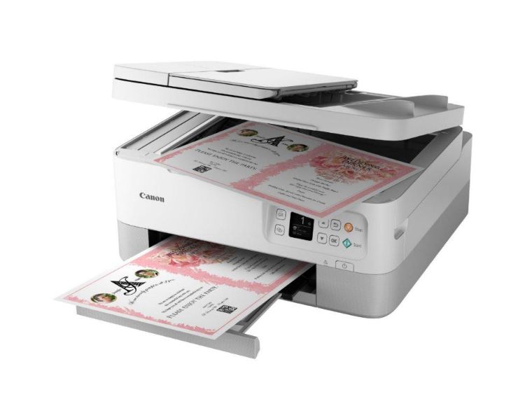 Especificaciones:. . Funciones. . Wi-Fi, impresión, copia, escaneo y nube. . Especificaciones de impresión. . Resolución de impresión: Hasta 4800 2 x 1200 ppp. Tecnología de impresión: 2 cartuchos FINE (negro y color). Velocidad de impresión en blanco y negro: Aprox. 13,0 ipm. Velocidad de impresión en color: Aprox. 6,8 ipm. Velocidad de impresión de fotografías: 10 x 15 cm sin bordes: aprox. 43 segundos. Impresión sin bordes: Sí (A4, B5, Carta, 20 x 25 cm, 13 x 18 cm, 10 x 15 cm, 13 x 13 cm, 8,9 x 8,9 cm, 17,5 x25 cm, 9,1 x 5,5 cm). Impresión a dos caras: Impresión automática a doble cara (A4, A5, B5, carta: papel normal). Cartuchos y rendimientos. . Cartuchos de tinta estándar:. PG-560 (negro). CL-561 (color). Cartuchos de tinta XL opcionales:. PG-560XL (negro). CL-561XL (color). Rendimiento del cartucho (papel normal): . Impresión de documentos en color A4. Negro: 180 páginas. Negro XL: 400 páginas. Color: 180 páginas. Color XL: 300 páginas. Rendimiento del cartucho (impresión de fotos):. Fotografías de 10 x 15 cm. Negro: 1408* fotografías. Negro XL: 3252* fotografías. Color: 76 fotografías. Color XL: 118 fotografías. * Rendimiento adicional estimado. Compatibilidad de papel. . Tipos de papel:. Papel normal. Papel Canon de Alta Resolución (HR-101N). Canon Platinum Pro (PT-101). Canon Fotográfico con Brillo II (PP-201). Canon Pro brillante (LU-101). Canon Plus Satinado (SG-201). Canon «Uso Diario» (GP-501). Canon mate (MP-101). Transfer para camisetas. Sobres. Etiquetas fotográficas adhesivas extraíbles (RP-101). Papel fotográfico magnético (MG-101). Tarjeta de felicitación (fabricada por Avery y RedRiverPaper). Cartulina (fabricada por Neenah Paper e INKPRESS). Canon Red Label Superior (WOP111). Canon Oce Office Colour Paper (SAT213). Papel mate de doble cara (MP-101D). Papel de transferencia térmica para tejidos claros (LF-101). Papel de transferencia térmica para tejidos oscuros (DF-101). Entrada máxima de papel:. Bandeja posterior: máx. 20 hojas (papel fotográfico) o máx. 100 hojas (papel normal). Casete frontal: máx. 100 hojas (papel normal). Alimentador automático de documentos:. Hasta 35 hojas (a una cara). Tamaños del papel:. Bandeja posterior: A4/A5/B5/LTR/LGL/20 x 25 cm/13 x 18 cm/10 x 15 cm/13 x 13 cm/8,9 x 8,9 cm/17,5 x 25 cm, 9,1 x 5,5 cm, sobres (DL, COM10). [Tamaños personalizados] anchura de 55 mm a 215,9 mm; longitud de 89 mm a 676 mm. Casete frontal: A4, A5, B5, LTR. [Tamaños personalizados] anchura de 148,0 mm a 215,9 mm; longitud de 210 mm a 297 mm. Gramaje del papel:. Bandeja inferior: papel normal: 64 - 105 g/m², papel fotográfico de Canon: hasta 300 g/m². Cassette frontal: papel normal: de 64 a 105 g/m². Especificaciones de escáner. . Tipo de escáner: Escáner plano con ADF y color CIS. Resolución del escáner (óptica): 1200 x 2400 ppp. Profundidad de escaneo (entrada / salida):. Color: RGB cada 16 bits/8 bits. Escala de grises: 16 bits/8 bits. Tamaño máximo del documento:. Escáner plano: A4, LTR (216 x 297 mm). ADF: A4, LTR, LGL. Especificaciones de copiadora. . Velocidad de copia:. sFCOT: aprox. 20 seg.. sESAT: aprox. 4 ipm. Copias múltiples:. 99 copias máx.. Funciones de copia:. Copia de documentos, copia a doble cara, 2 en 1, copia clasificada (solo ADF). Copia con zoom:. De 25 a 400 %. Ajuste a página. Interfaz. . Tipo y tamaño de pantalla: OLED (1,44 pulgadas). Idiomas en pantalla:. Posibilidad de seleccionar entre 33 idiomas: japonés/inglés (mm y pulgadas)/alemán/francés/italiano/español/holandés/portugués/noruego/sueco/danés/finlandés/ruso/checo/húngaro/polaco/esloveno/turco/griego/chino simplificado/chino tradicional/coreano/indonesio/eslovaco/estonio/letón/. lituano/ucraniano/rumano/. búlgaro/tailandés/croata/vietnamita. Tipo de interfaz: PC / Mac:. USB de alta velocidad (puerto B). Wi-Fi: IEEE802.11 b/g/n. Seguridad Wi-Fi: WPA-PSK, WPA2-PSK, WEP. Banda de frecuencia de LAN inalámbrica: 2,4 GHz. Tipo de interfaz - otra:. Aplicación Canon PRINT Inkjet/SELPHY. Easy-PhotoPrint Editor. Bluetooth. PIXMA Cloud Link. Complemento Canon Print Service (Android). Apple AirPrint. Wireless Direct. WLAN PictBridge. Mopria (Android). Software. . Sistemas operativos soportados: . Windows 10, Windows 8.1, Windows 7 SP1. Solo se garantiza el funcionamiento en un PC con Windows 7 o posterior instalado.. macOS 10.12. 6^macOS 10.15. Sistemas móviles compatibles: iOS, iPadOS, Android, ChromeOS. Operational Requirements. Pantalla: 1024 x 768 XGA. Instalación: Internet, CD-ROM (Windows). Software incluido:. Driver MP con Scanning Utility. Easy-PhotoPrint Editor (descarga). Características físicas. . Peso: Aprox. 8,2 kg. Dimensiones (An x Pr x Al): Aprox. 403 x 364 x 206 mm. Niveles de ruido acústico: Aprox. 42,5 (A) 11. Entorno operativo recomendado:. Temperatura: 15 - 30 ºC. Humedad: 10 - 80% HR (sin condensación). Fuente de alimentación: CA 100-240 V, 50/60 Hz. Consumo de energía: . Apagada: aprox. 0,3 W. En espera (conectada al PC mediante USB): aprox. 0,9 W (lámpara del escáner apagada). En espera (todos los puertos conectados): aprox. 1,7 W (lámpara del escáner apagada) . Tiempo para entrar en modo en espera: 10 minutos, 7 segundos. Copia: aprox. 14 W 12