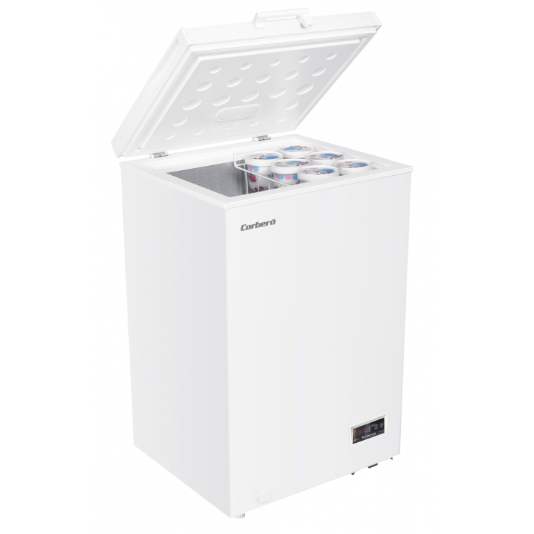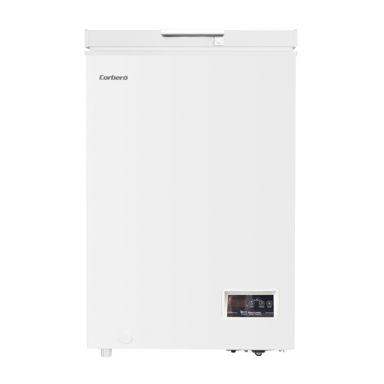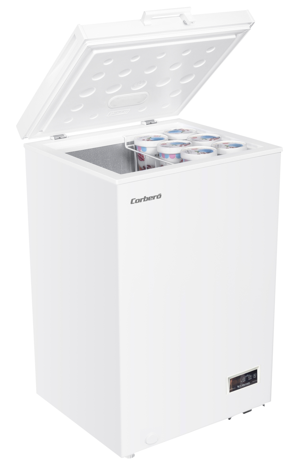Congelador Arcón serie Dual System Congelador Arcón Capacidad 98 L, Color Blanco, Tirador, Control Electrónico Con Display, Luces LED, 1 Cesta Interior, 2 Ruedas, 2 Patas Ajustables, Tirador, 40 Db, Eficiencia Energética E - FondoxAnchoxAlto (mm.): 480X545X855