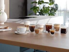 Amplia selección de bebidas Escoge entre 18 bebidas con un solo toque y selecciona tus favoritas: Espresso, Capuccino, Largo, Cold Americano, Flat White y Cortado ente otras.