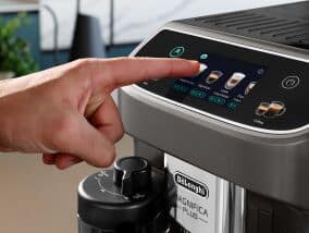 Delonghi cafetera superautomática ECAM320.70.TB Magnifica Plus. Sumérgete en un mundo de bebidas de café con solo un toque. Hay un café para todos los gustos con De'Longhi Magnifica Plus, con 18 bebidas disponibles con solo pulsar un botón. Disfruta de una experiencia envolvente con la pantalla táctil a todo color de 3,5 pulgadas con animaciones detalladas, y personaliza tus favoritos con hasta 4 perfiles de usuario. Disfruta de la refinada y abundante espuma que te da la Tecnología LatteCrema Hot en todas tus bebidas a base de leche.