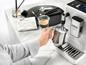 Delonghi cafetera superautomática EXAM440.35.W Rivelia Arctic White. Cambia a una nueva experiencia de café en casa con nuestra innovadora cafetera automática. Sumérgete en el mundo del café con Rivelia. Explora infinitas variedades de granos con el sistema Bean Switch; disfruta de una experiencia envolvente con una pantalla táctil a todo color de 3,5 pulgadas, con animaciones detalladas y rutinas de café adaptadas a ti. Prepara una espuma cremosa con el vaporizador de leche manual, en una máquina compacta que se adapta a tu estilo.