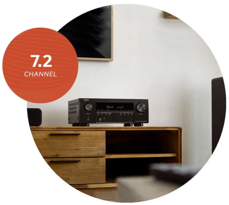 Disfrute de increíbles vídeos 8K y audio 3D envolvente desde el AVR-S970H. Llene habitaciones de tamaño mediano con un sonido más refinado desde una configuración 7.2 o 5.2.2 con Dolby Atmos y DTS:X. Y con HEOS® integrado, transmita música en línea de forma inalámbrica y compártala con parlantes habilitados para HEOS en otras habitaciones.