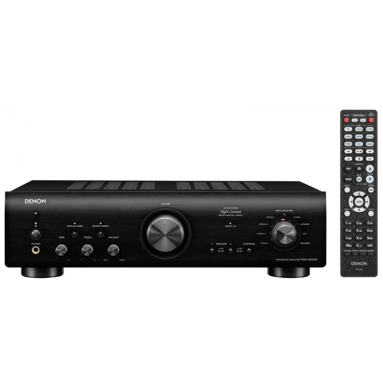 El amplificador integrado PMA-800NE de Denon lleva el rendimiento de audio de máxima calidad a un nivel superior con sus entradas digitales y ecualizador de phono integrado. El convertidor D/A de 192 kHz/24 bits te permitirá escuchar tus contenidos de audio de alta resolución favoritos con profundos graves y detallados agudos. Con 85 vatios (4 ohmios) por canal, el PMA-800NE tiene potencia suficiente para garantizar una óptima calidad de sonido con cualquier altavoz. Podrás conectar tus componentes favoritos al PMA-800NE a través de las tres entradas digitales ópticas y la entrada digital coaxial. Equipado con un transistor de potencia con circuito push-pull sencillo AHC (Advanced High Current), el PMA-800NE proporciona una calidad de sonido excepcional que combina alta potencia y delicados matices musicales.