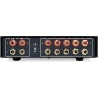 La extensión de entrada para todos aquellos que tienen más fuentes HiFi que entradas en sus amplificadores HiFi. Con el AUX-S PRO tienes la posibilidad de cambiar entre una de hasta cinco fuentes HiFi (p. ej., reproductor de CD, reproductor de DVD, sintonizador, etc.) y uno de hasta dos amplificadores HiFi (p. ej., amplificador estéreo, amplificador envolvente) ​​sin tener que cambiar el cableado. Los interruptores de alta calidad y las conexiones Cinch (RCA) chapadas en oro garantizan una resistencia de contacto muy baja. La robusta carcasa de metal con un macizo frontal de aluminio de 4 mm hace que el AUX-S PRO llame la atención y, por lo tanto, puede colocarse fácilmente junto a otros componentes de alta fidelidad.