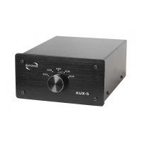 Dynavox AUX-S.  Dynavox AUX-S extensión de entrada AUX-S compacto con carcasa de metal con 5 entradas RCA. La extensión de entrada para cualquiera que tenga más fuentes HiFi que entradas en su amplificador HiFi. Carcasa metálica con panel frontal macizo de 4 mm. Interruptor de alta calidad. Resistencia de contacto muy baja y conectores RCA chapados en oro.