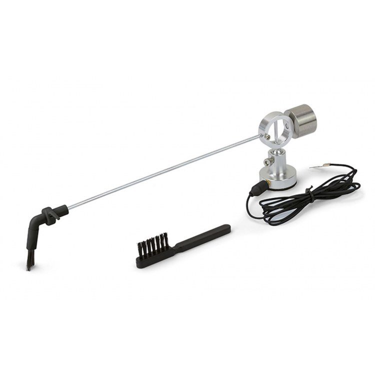 Con la escoba limpiadora para discos de vinilo de Dynavox, puede quitar el polvo y limpiar sus discos de vinilo de manera fácil y efectiva mientras se reproducen y, al mismo tiempo, proteger su sistema de recolección. Debido a la construcción con escobillas de carbón y el cable de puesta a tierra de los componentes metálicos, la carga estática producida durante la limpieza no es un problema. El cepillo simplemente se coloca en la base de rodamiento de agujas por un lado y en el disco de vinilo por el otro lado (lado del cepillo) y luego funciona automáticamente. La base tiene posibilidad de regulación en altura y es autoadhesiva y acolchada. Para usar el cepillo de barrido, solo tiene que colocarlo cerca del tocadiscos para que el cepillo llegue aproximadamente a la mitad del disco. Luego se ajusta la altura (brazo de limpieza paralelo al tocadiscos) y se conecta la conexión a tierra al amplificador y se instala la escoba. Todas las partes metálicas están hechas de aluminio o acero inoxidable. También se incluye un cepillo de agujas en los accesorios.