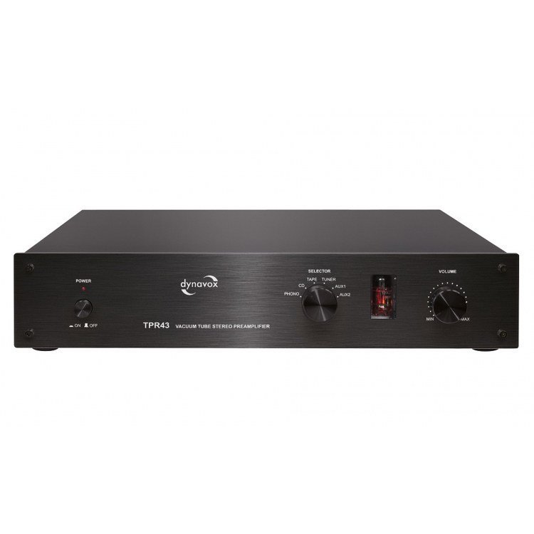 Dynavox TPR-43. Preamplificador de válvulas Dynavox TPR-43 un previo de sonido para la conexión a cualquier fuente de música. Al hacer un bucle de la señal a través de un tubo 12AU7, el sonido se convierte en una experiencia que, de otro modo, solo se conoce con un amplificador de tubo. Una ventana de vidrio en la parte delantera hace que esta etapa preliminar sea realmente llamativa debido al brillo del tubo. El TPR-43 tiene una entrada fonográfica para usar junto con los sistemas de escaneo MM y MC. También hay 4 entradas adicionales que se enrutan a través del tubo y una entrada que se puede controlar directamente a través del control de volumen sin preparación del tubo.