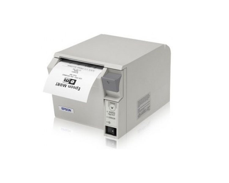 TM-T70 es una impresora Punto de Venta de manejo totalmente frontal, La Epson TM-T70 está especialmente diseñada para instalar bajo el mostrador, perfectamente integrada en el mobiliario de su negocio. Ideal para los sectores de comercio y restauración.. Método de Impresión : Térmico. Fuentes : Fuente : 9x17 / 12x24. Capacidad columnas : 56/42. Mapa de caracteres : 95 alfanuméricos, 48 internacionales, 128x11 gráficos.. Códigos de barras: UPC-A, UPC-E, JAN13 (EAN), JAN8 (EAN), CODE39, CODE93, CODE128, ITF, CODABAR. 2D: PDF417, QRCode. Interfaz : RS-232 ó Paralelo Bidireccional ó USB.. Opcionales: Ethernet 10/100 BaseTX, Wireless LAN (802.11b).. Velocidad de Impresión : 170 mm/seg tanto en texto como en modo gráfico. Dimensiones y grosor del Papel : Rollo Papel : 79.5 + 0.5 (W) x 83.0. Grosor : 0.06 a 0.07. área de Impresión : Recibo : ancho máx. 72,2 mm. . área recibo. Tensión alimentación : 24 VDC ± 7%. Consumo : Aprox. 1.8 A (media). Función D.K.D. : 2 Drivers. Fiabilidad : MTBF : 36x104 horas. MCBF : 52x106 líneas (rollo papel térmico). Dimensiones generales : 125 (W) x 194 (D) x 114 (H). Peso aproximado : 1.8 Kg. Opciones Disponibles : Cubierta para los cables. Fuente de Alimentación : PS-180 incorporada en la caja.. Colores disponibles : Blanco y Negro.