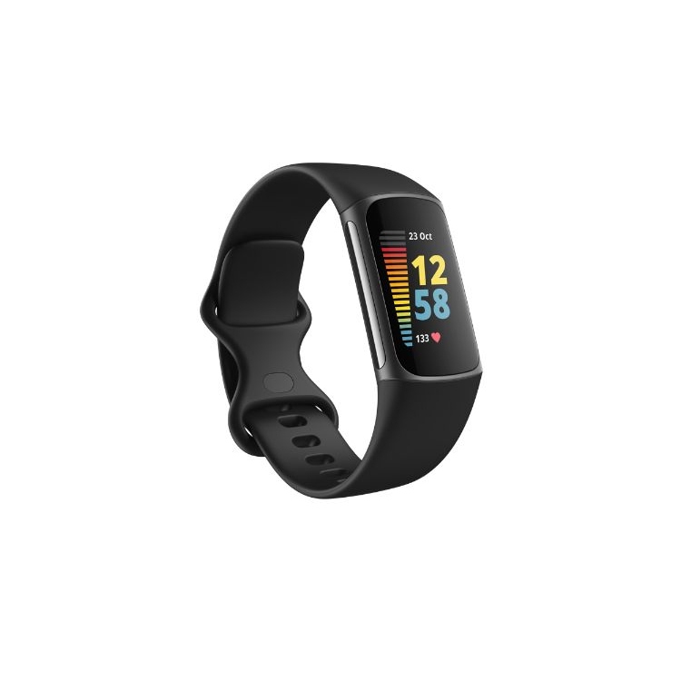 Especificaciones:. . Sensores y componentes. . Monitor óptico de la frecuencia cardiaca. Acelerómetro de tres ejes. GPS integrado + GLONASS. Sensores de luz roja e infrarroja para la monitorización de la saturación de oxígeno (SpO2). Sensor de temperatura del dispositivo (detección de variaciones en temperatura cutánea disponible en la aplicación de Fitbit). Motor de vibración. Sensor de luz ambiental. Transceptor de radio: Bluetooth. Chip NFC (Near field communication). Sensores eléctricos con múltiples funciones compatibles con las aplicaciones ECG y Escáner EDA. . Batería y alimentación. . Batería que dura hasta 7 días. Si usas la función de pantalla siempre activa o la de SpO2 tendrás que recargar el dispositivo con más frecuencia. Recomendamos que cargues la pulsera de actividad cada pocos días para asegurarte de que la monitorización es continua.. Tipo de batería: polímero de litio. Tiempo de carga (0-100 %): dos horas. . Memoria. . Guarda todos los datos de tus movimientos durante siete días, minuto a minuto. Guarda los totales diarios de los últimos 30 días. Almacena datos sobre la frecuencia cardiaca en intervalos de un segundo durante la monitorización del ejercicio y de cinco segundos el resto del tiempo. . Resistencia al agua. . Resistente al agua hasta 50 metros. Después de nadar o de mojar la correa recomendamos secarla porque, como cualquier dispositivo que se lleva puesto, es mejor para la piel que la correa esté limpia y seca.. . Cuidado. . Dale un descanso a tu muñeca quitándote el smartwatch de vez en cuando. Si la pulsera se humedece o sudas con ella puesta, quítatela y sécala completamente antes de volver a ponértela. Obtén más información.. Materiales. . La carcasa de Charge 5 está hecha de aluminio, cristal y resina. La correa es de silicona con hebilla de aluminio.. Frecuencia cardiaca. . Como sucede con todas las tecnologías de monitorización de la frecuencia cardiaca, la precisión se ve afectada por la fisiología, el lugar donde se coloque el dispositivo y el tipo de movimiento.. Requisitos medioambientales. . Temperatura de funcionamiento: de -10 a 45 ºC. Altitud máxima de funcionamiento: 8535 metros. . Sincronizar. . La aplicación de Fitbit es compatible con la mayoría de móviles. Para poder configurar y usar los dispositivos y servicios de Fitbit, debes instalar la aplicación de Fitbit en un dispositivo compatible con sistema operativo:. Apple iOS 12.2 o superior.. Android OS 8.0 o superior. Consulta nuestros consejos adicionales para móviles Android aquí.. Rango de sincronización: hasta 9 m. Algunas funciones, como las notificaciones del smartphone, pueden requerir Android 8.0 o superior. Verifica la compatibilidad de tu dispositivo.. La sincronización requiere Bluetooth® LE y conexión a Internet.. Se sincroniza con equipos con sistema operativo Mac OS X 12.2 y posteriores, iPhone 5S y posteriores, Android 8.0 y posteriores.. . Tamaño de la correa. . Imprime esta guía para encontrar la talla adecuada para ti. Se incluyen en la caja tanto la talla pequeña (Small) como la grande (Large).. Pequeña (Small): Se ajusta a muñecas de entre 130 y 170 milímetros de diámetro. Grande (Large): Se ajusta a muñecas de entre 170 y 210 milímetros de diámetro. Tamaño de la ventana. . área de visión: 26,43 mm en diagonal. Altura de la pantalla: 21,93 mm. Ancho de la pantalla: 14,75 mm